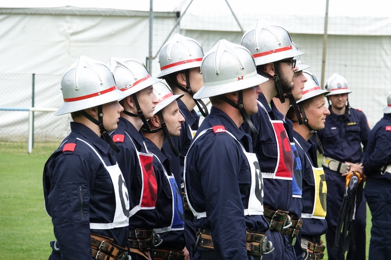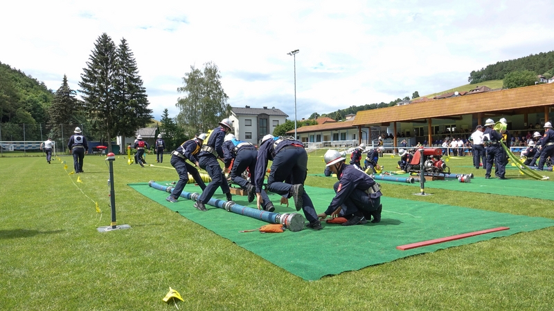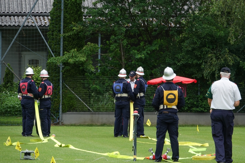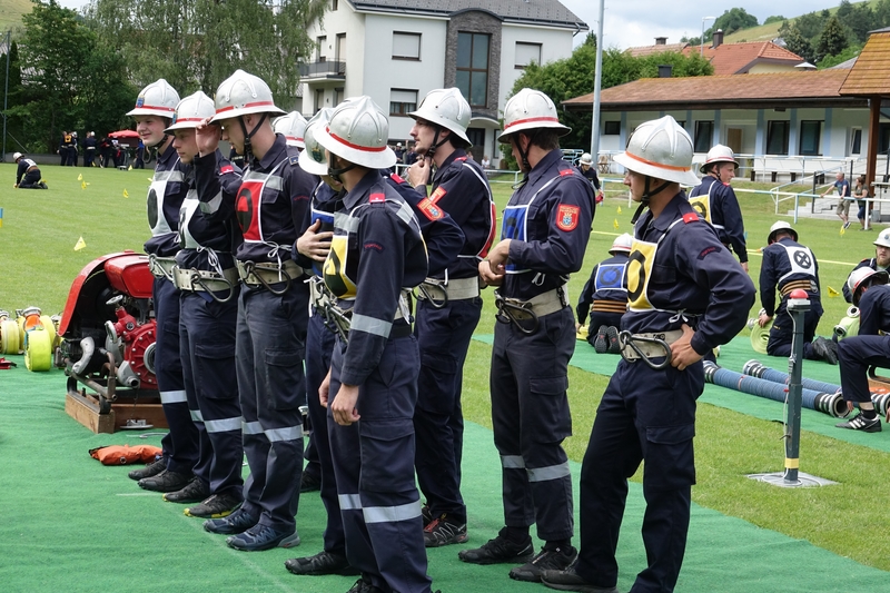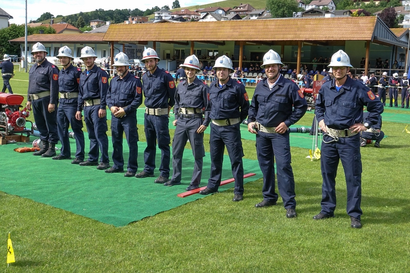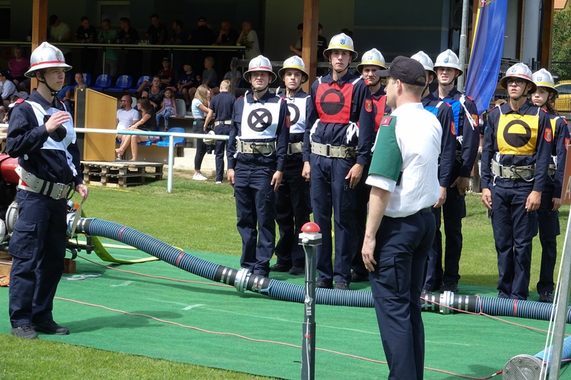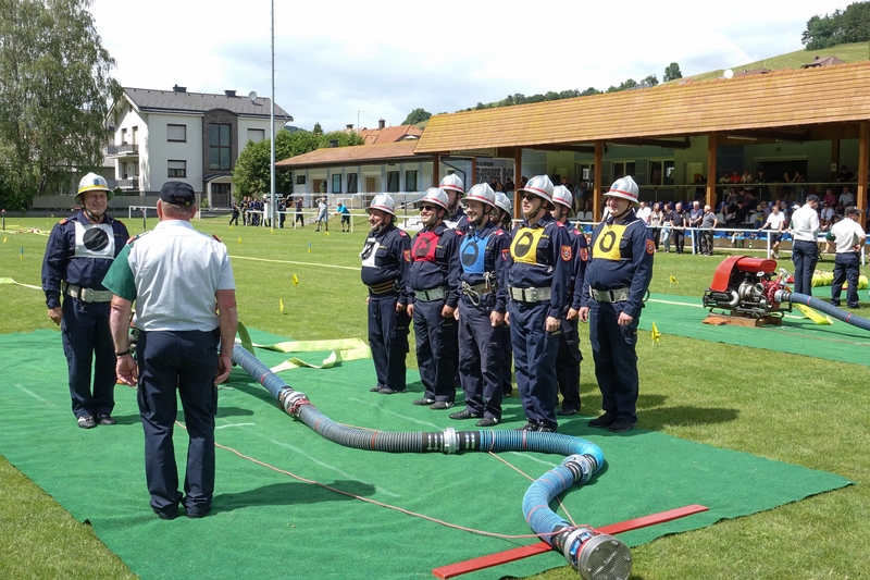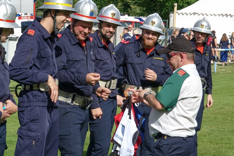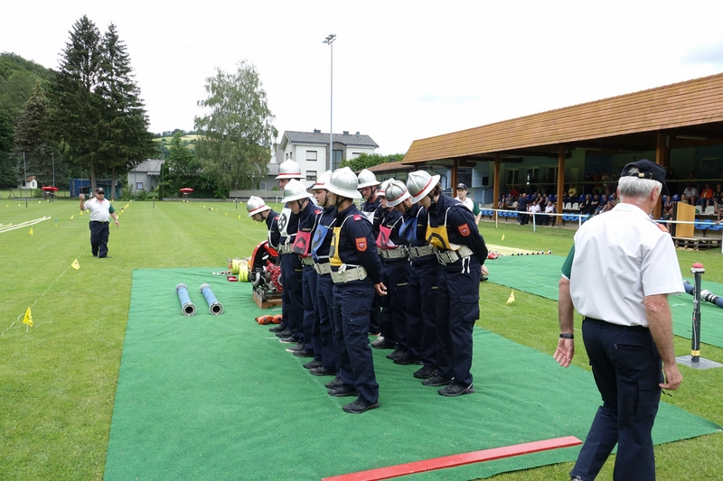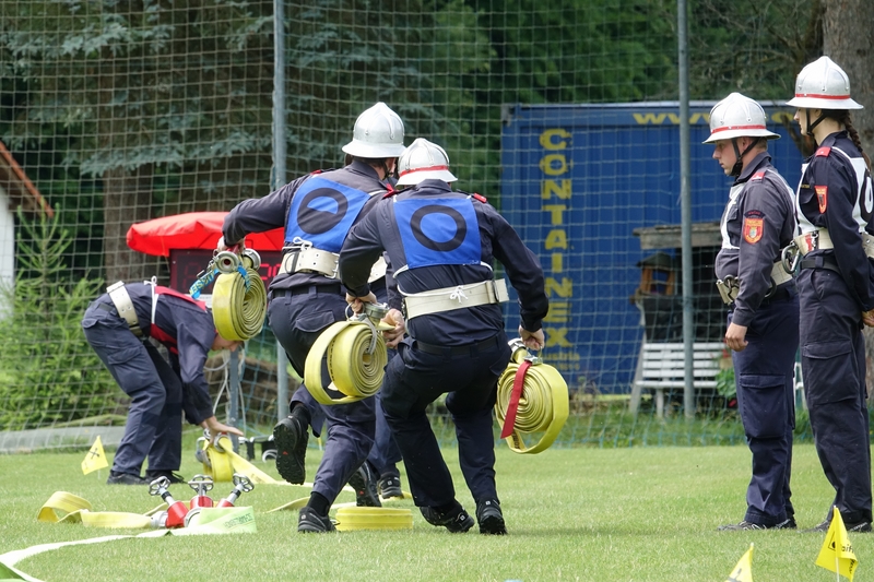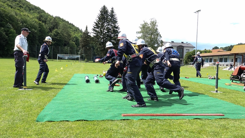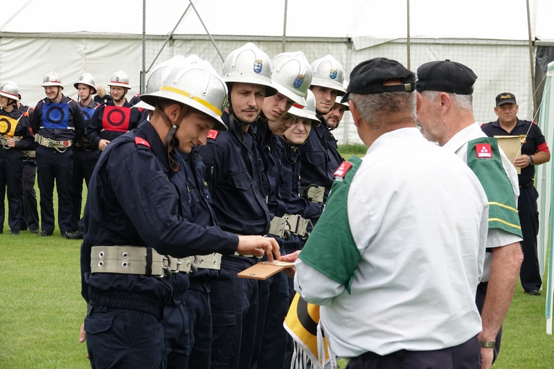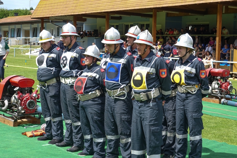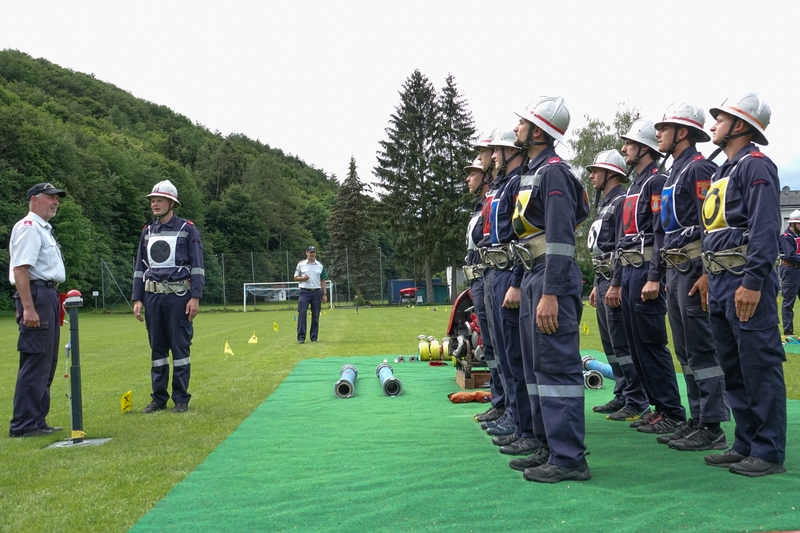Danach wurde der Bewerb unter Bewerbsleiter und Hauptbewerter EHBI Rupert Ungersbäck und Hauptbewerter OBM Karl Zangl und ihren Teams auf dem Sportplatz des SC Schwarzenbach bei idealen Bedingungen vorbildlich durchgeführt.