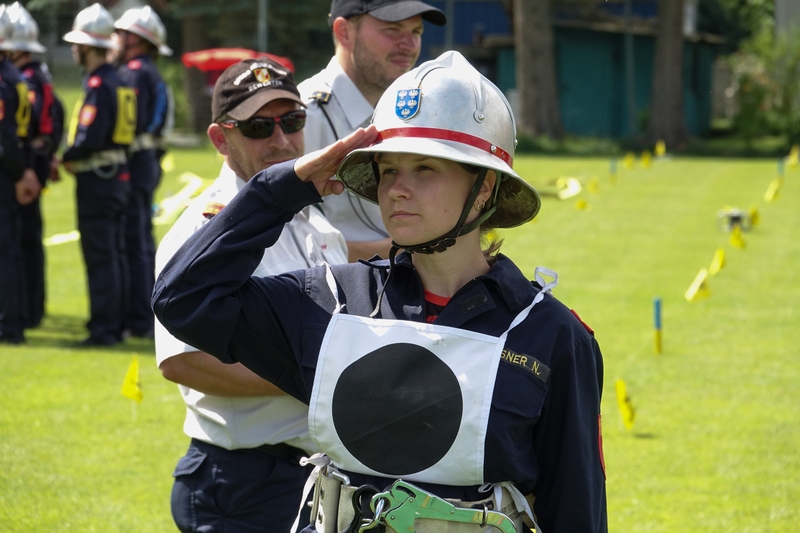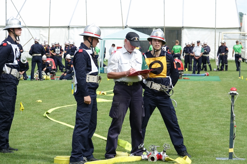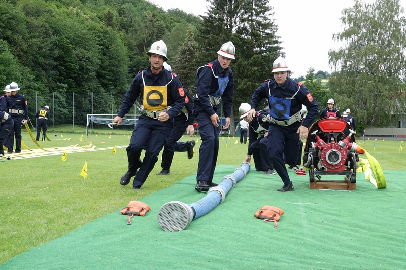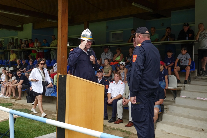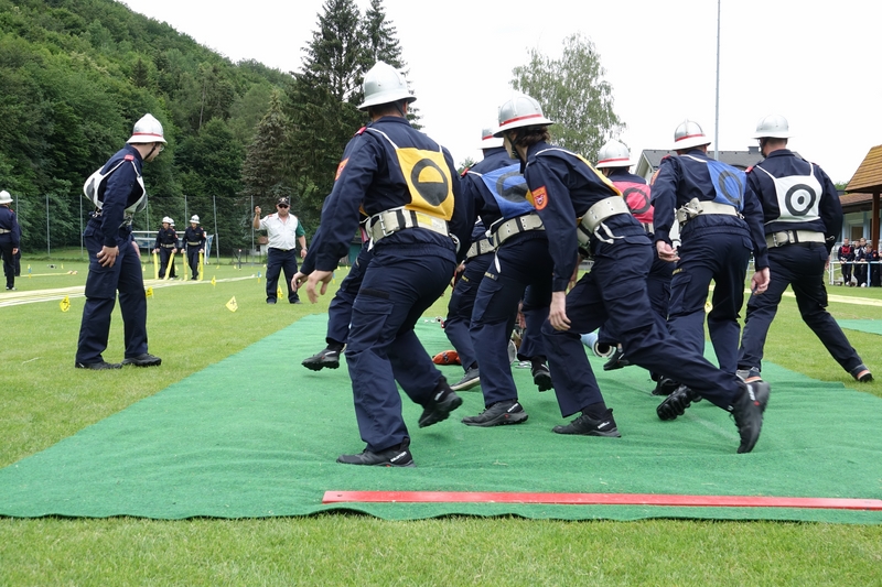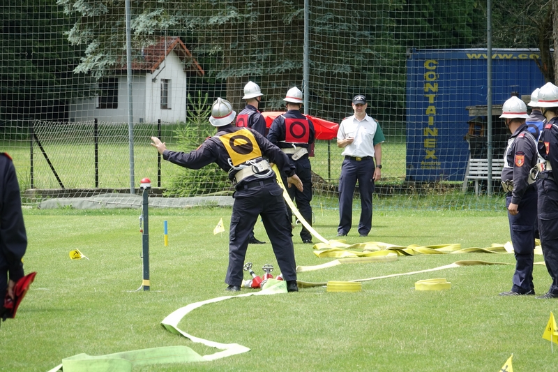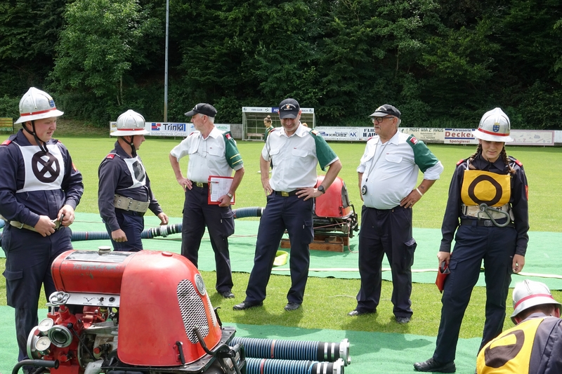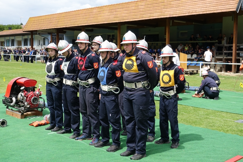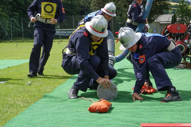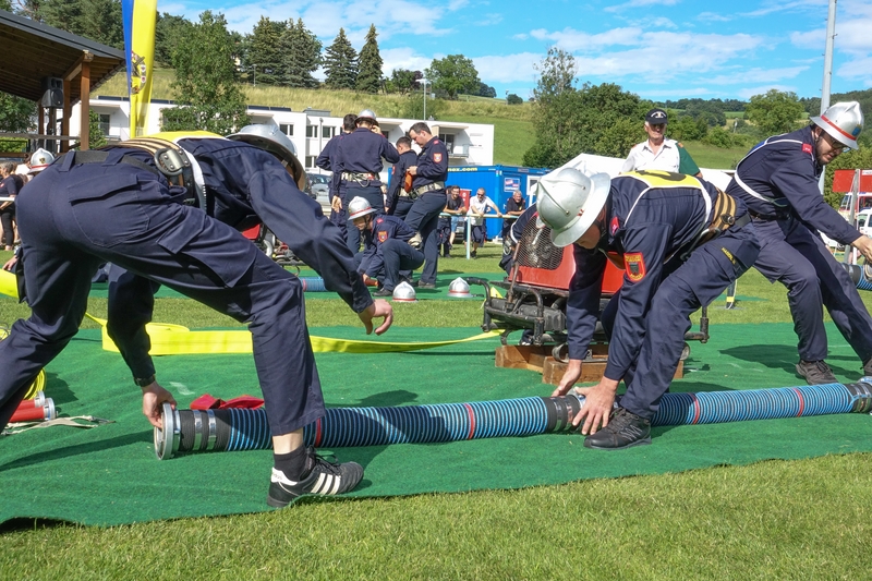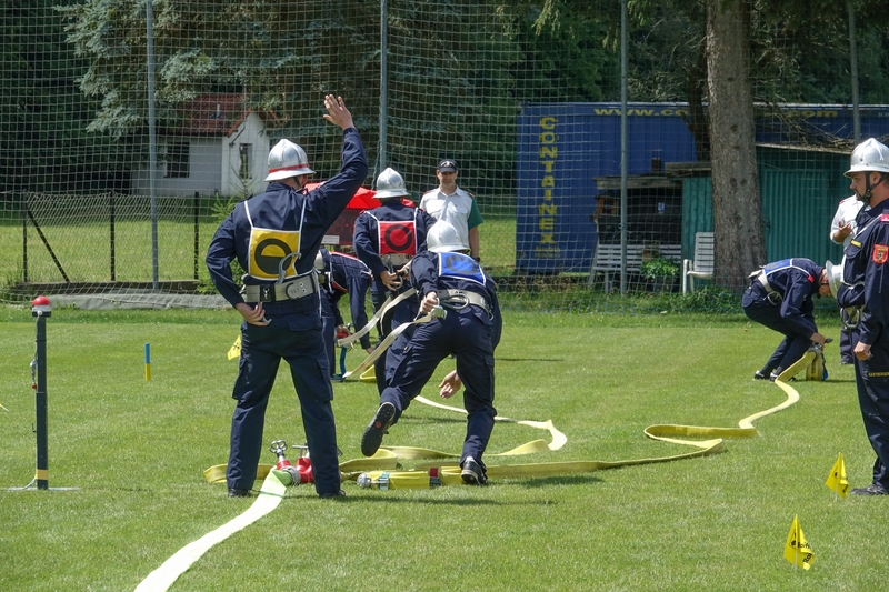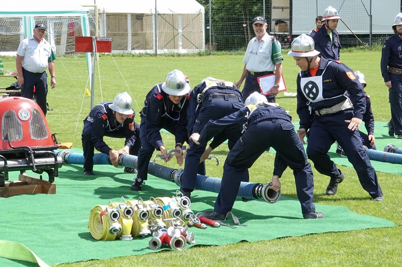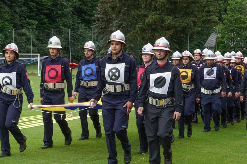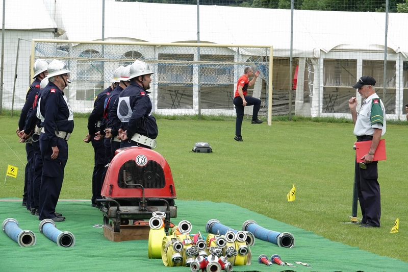 Danach wurde der Bewerb unter Bewerbsleiter und Hauptbewerter EHBI Rupert Ungersbäck und Hauptbewerter OBM Karl Zangl und ihren Teams auf dem Sportplatz des SC Schwarzenbach bei idealen Bedingungen vorbildlich durchgeführt.