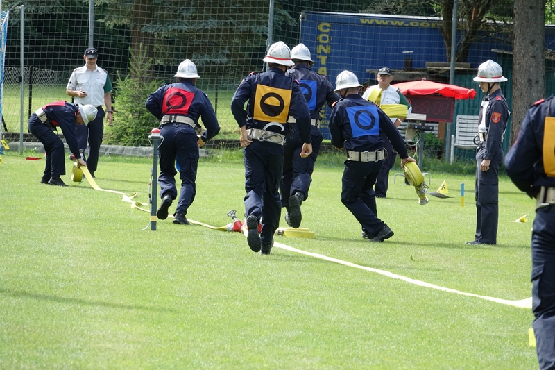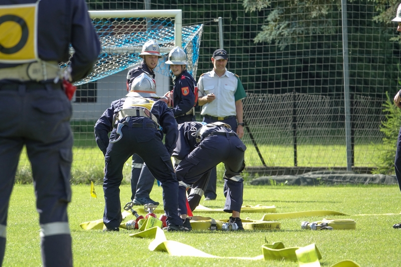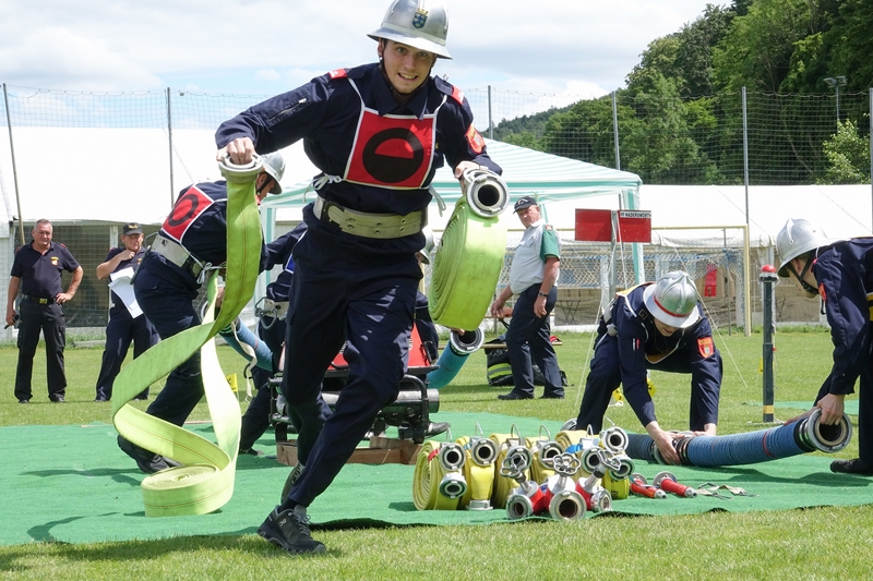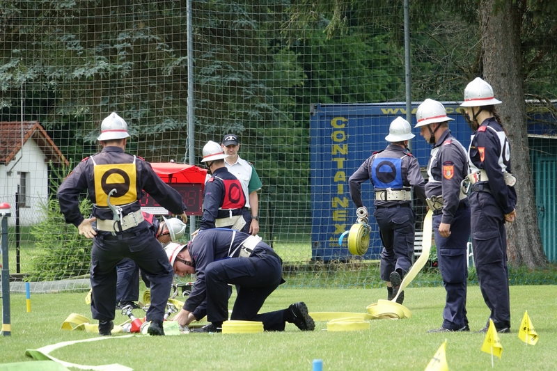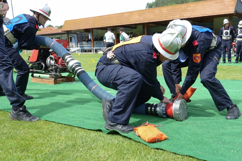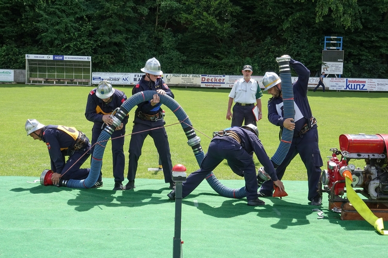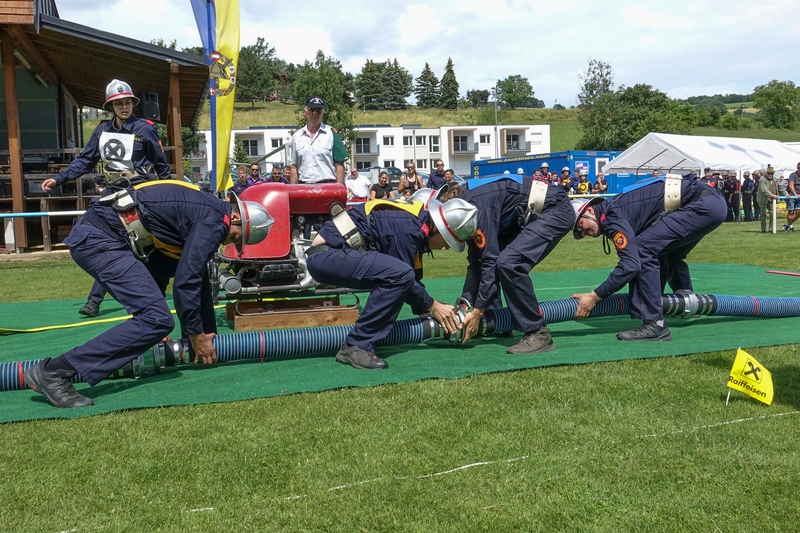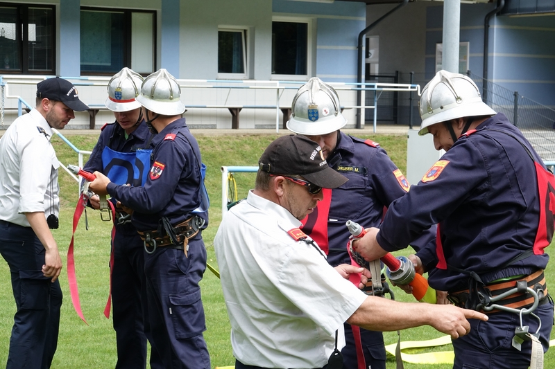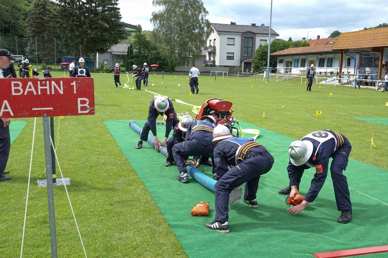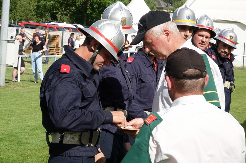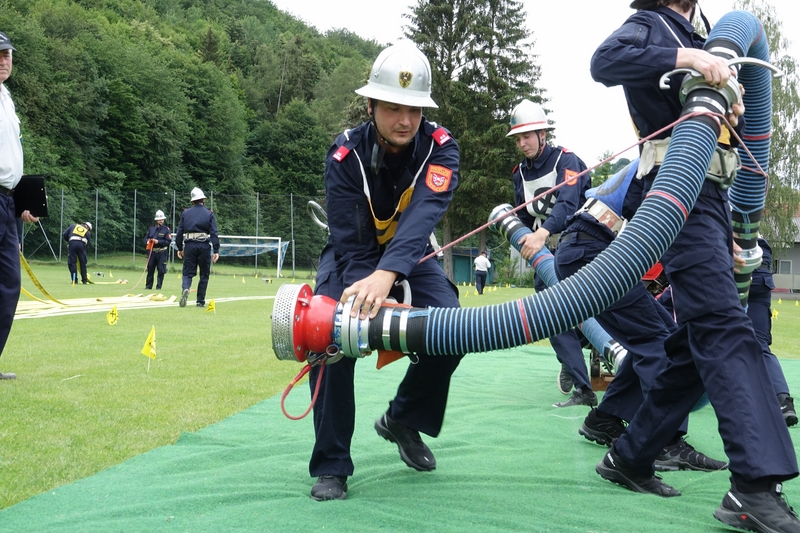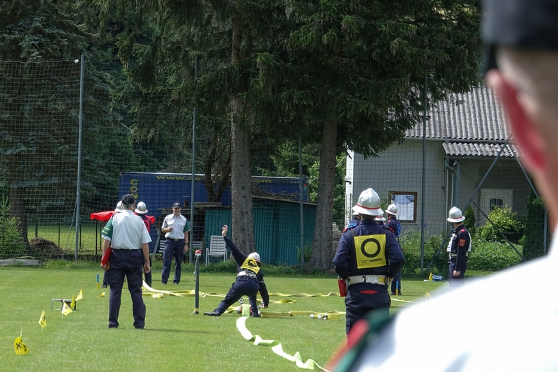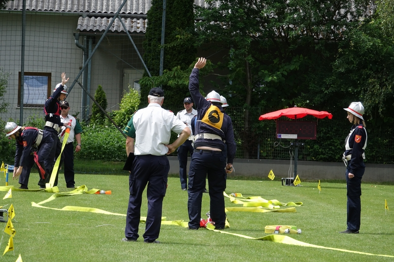 Danach wurde der Bewerb unter Bewerbsleiter und Hauptbewerter EHBI Rupert Ungersbäck und Hauptbewerter OBM Karl Zangl und ihren Teams auf dem Sportplatz des SC Schwarzenbach bei idealen Bedingungen vorbildlich durchgeführt.