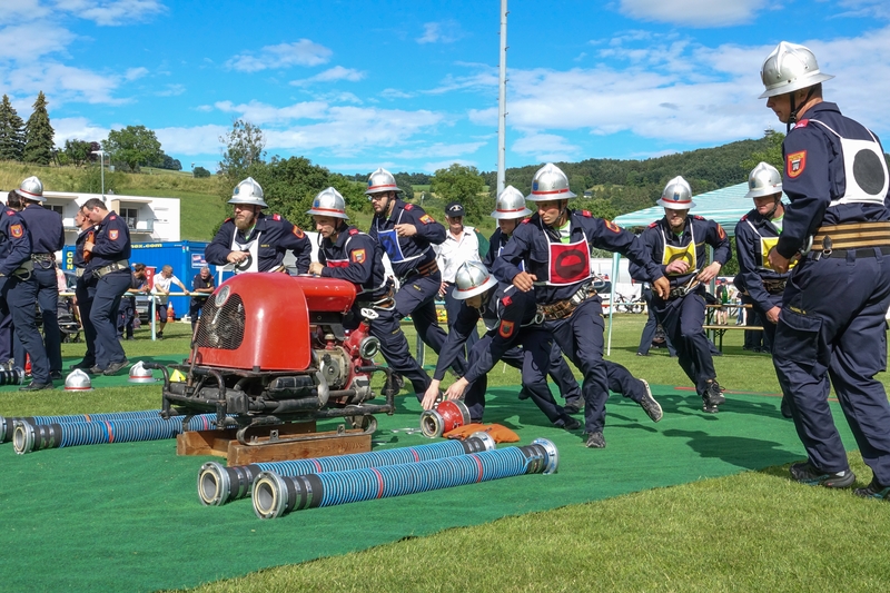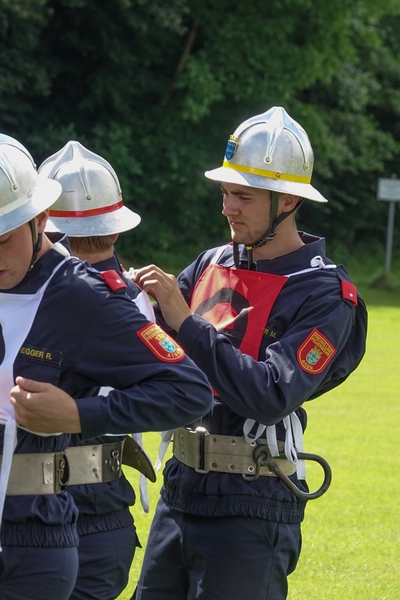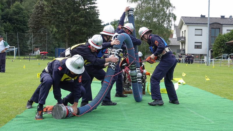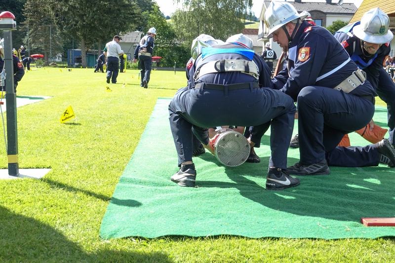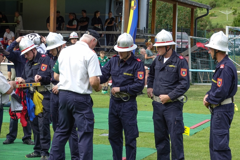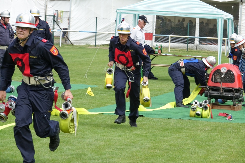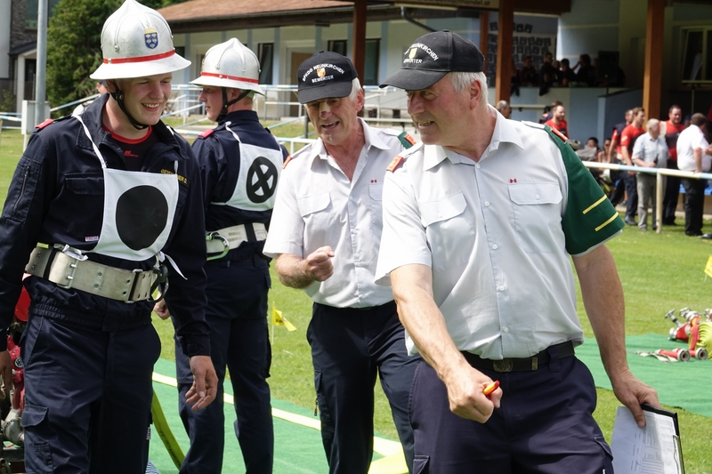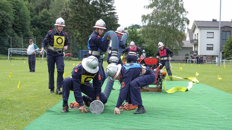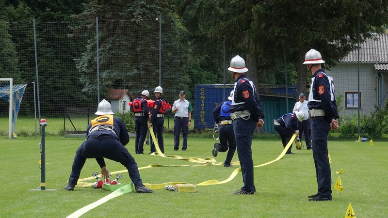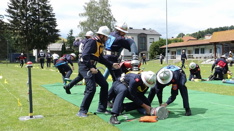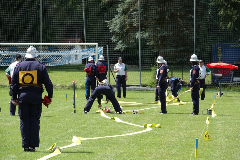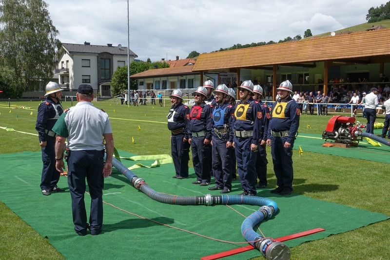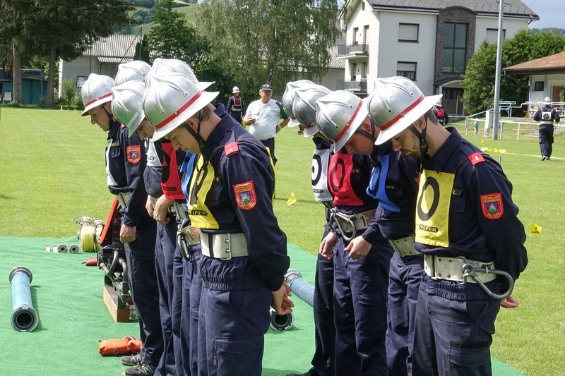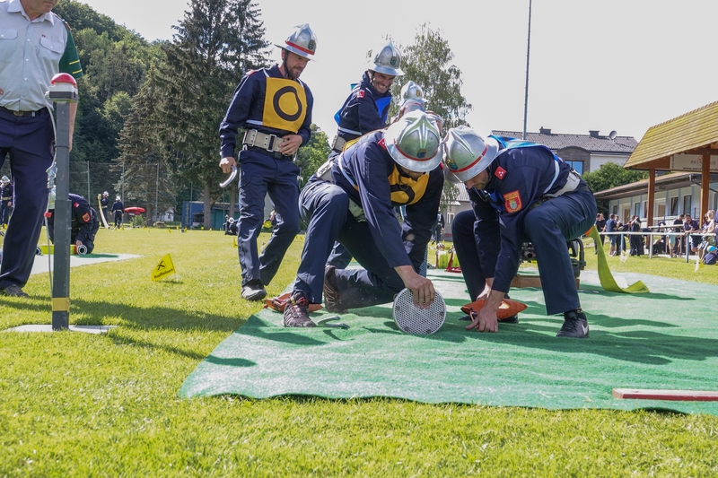 Danach wurde der Bewerb unter Bewerbsleiter und Hauptbewerter EHBI Rupert Ungersbäck und Hauptbewerter OBM Karl Zangl und ihren Teams auf dem Sportplatz des SC Schwarzenbach bei idealen Bedingungen vorbildlich durchgeführt.
