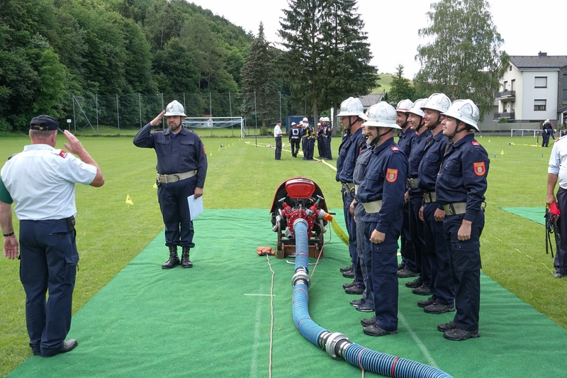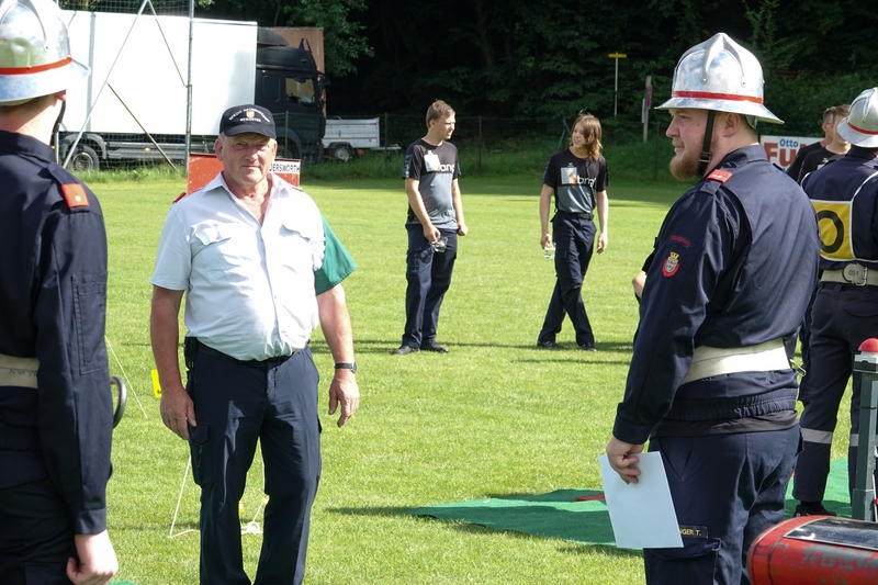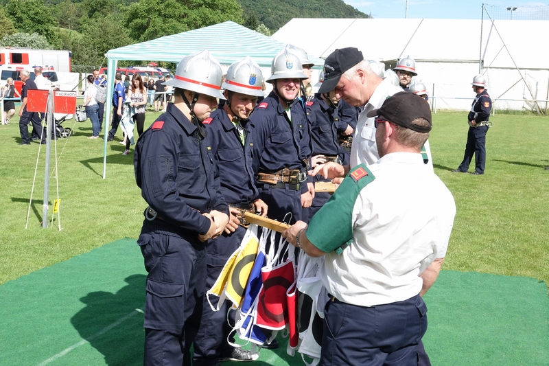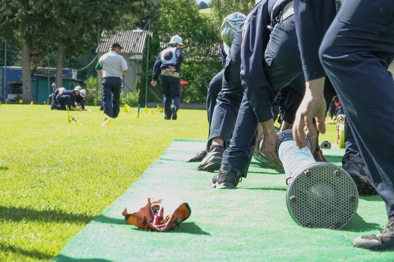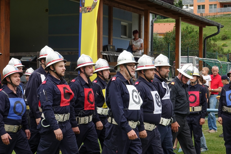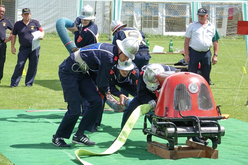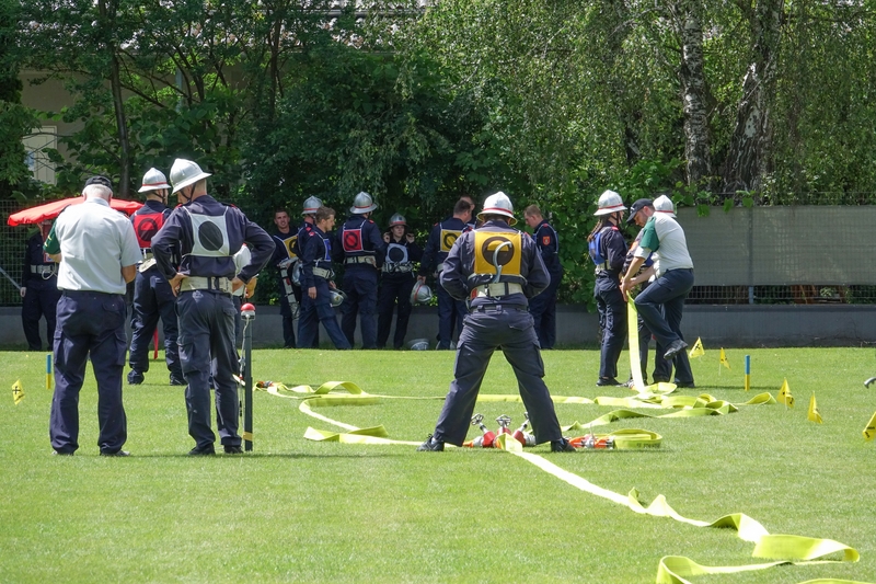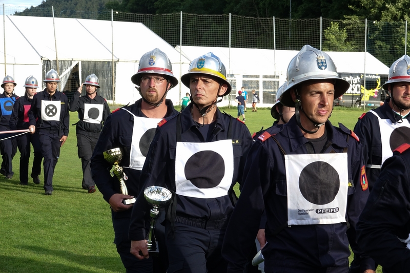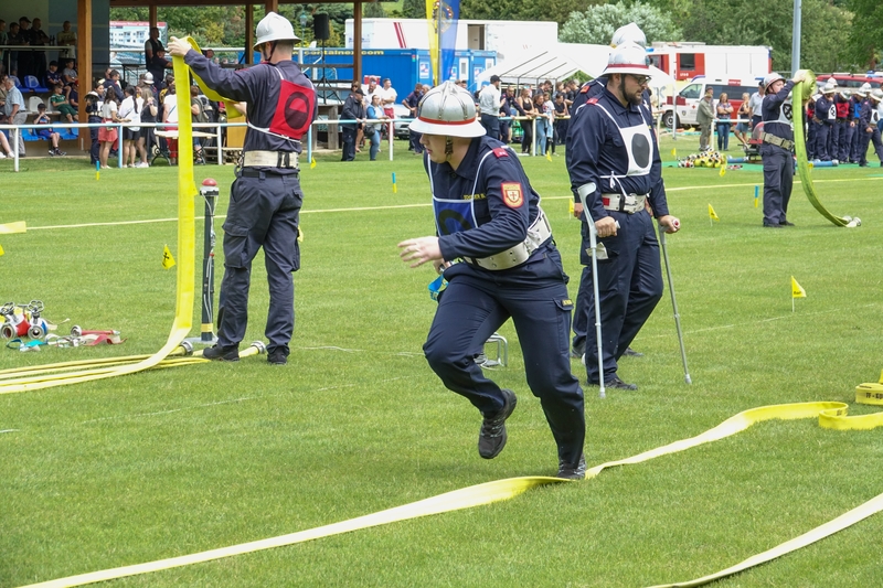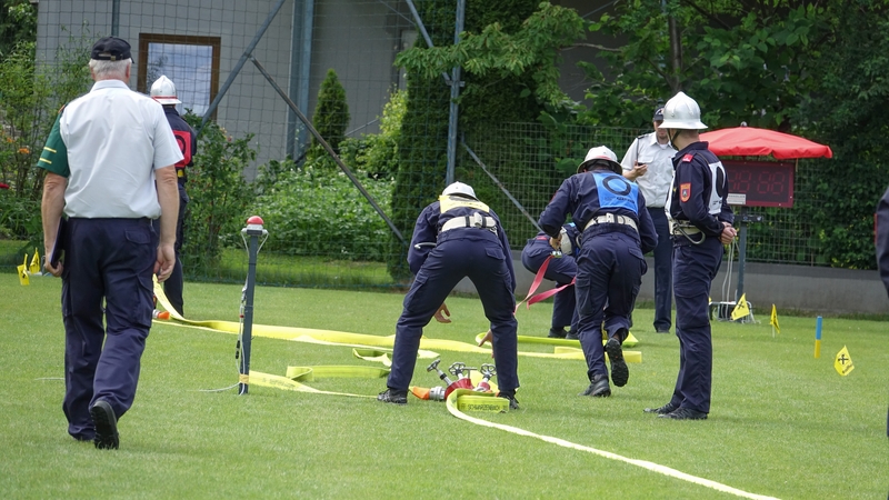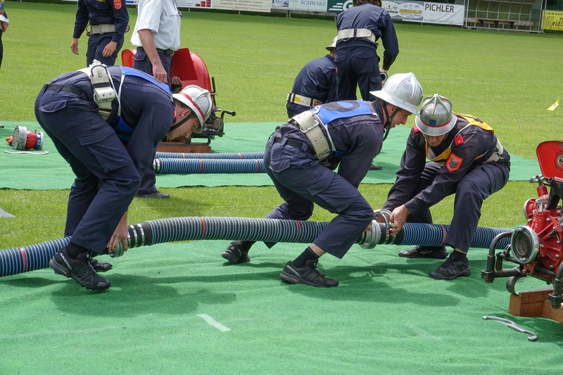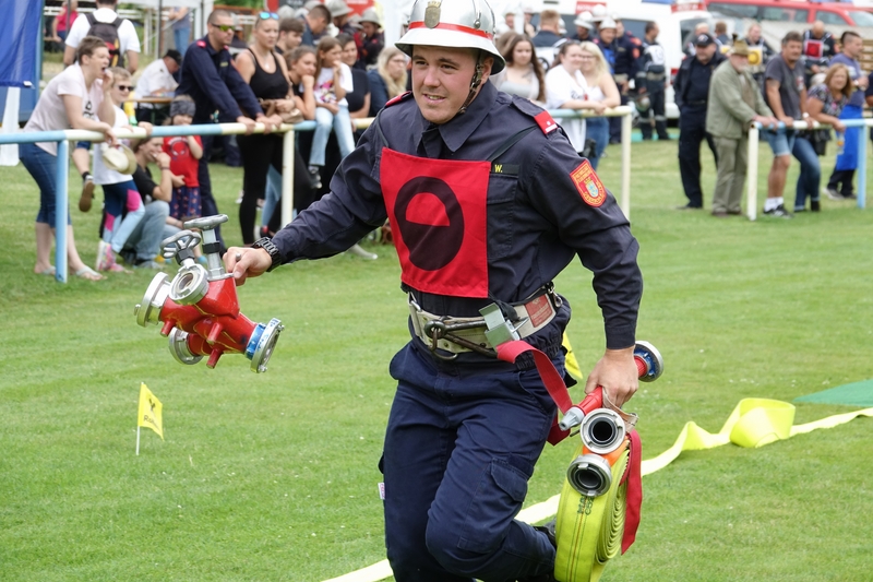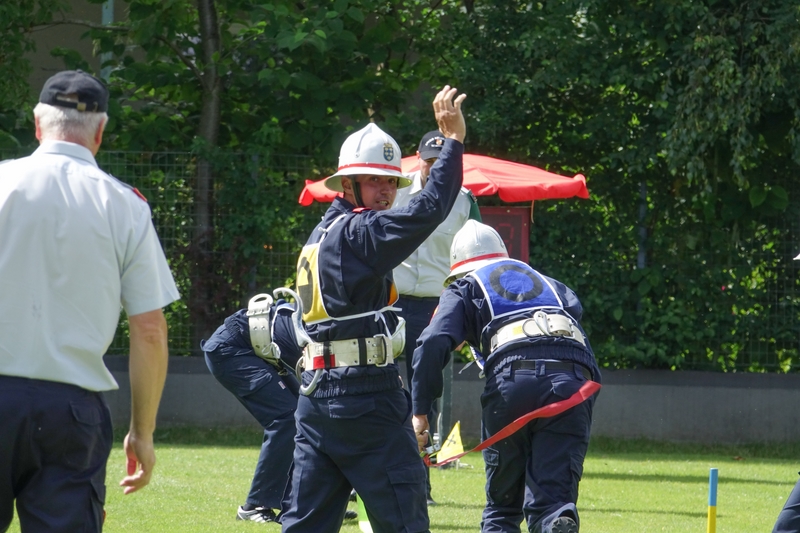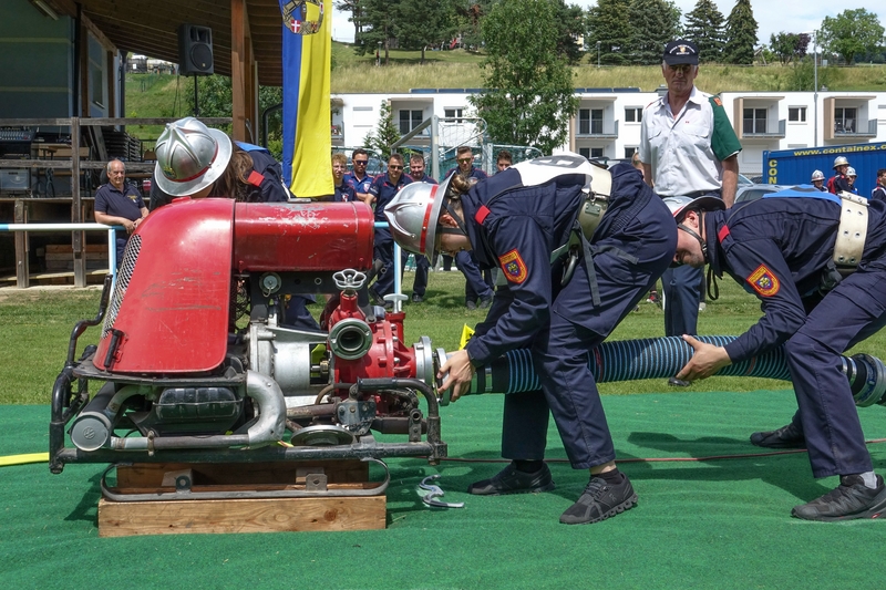 Danach wurde der Bewerb unter Bewerbsleiter und Hauptbewerter EHBI Rupert Ungersbäck und Hauptbewerter OBM Karl Zangl und ihren Teams auf dem Sportplatz des SC Schwarzenbach bei idealen Bedingungen vorbildlich durchgeführt.