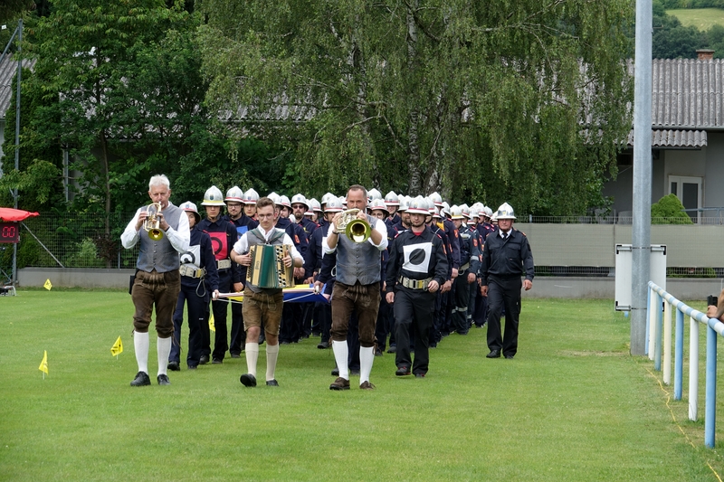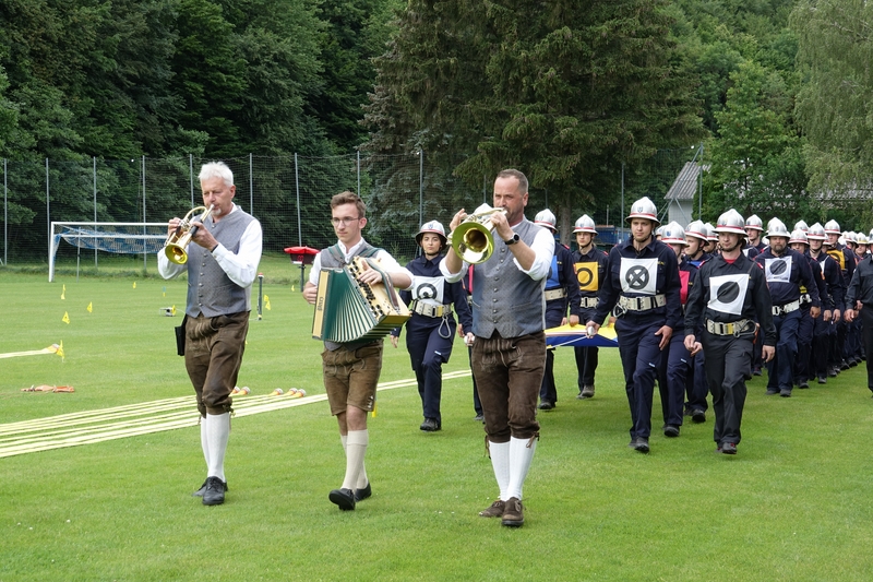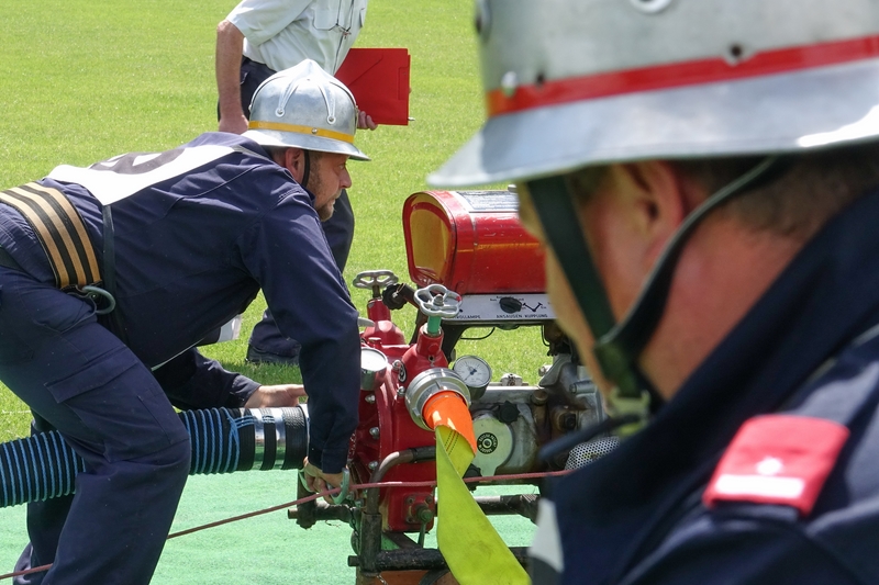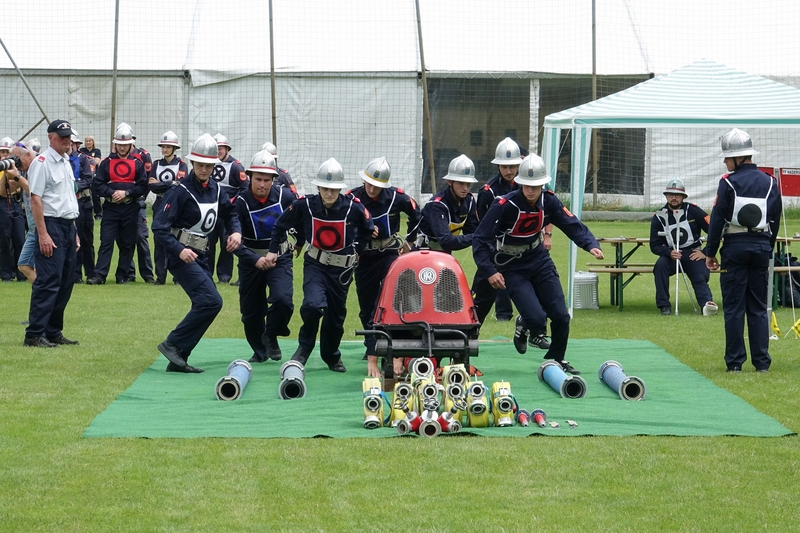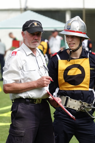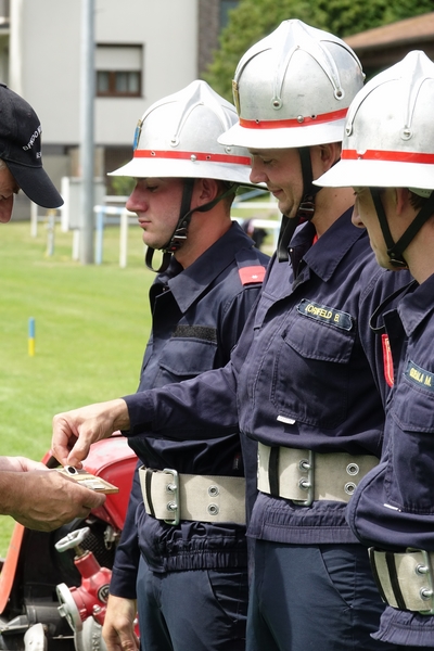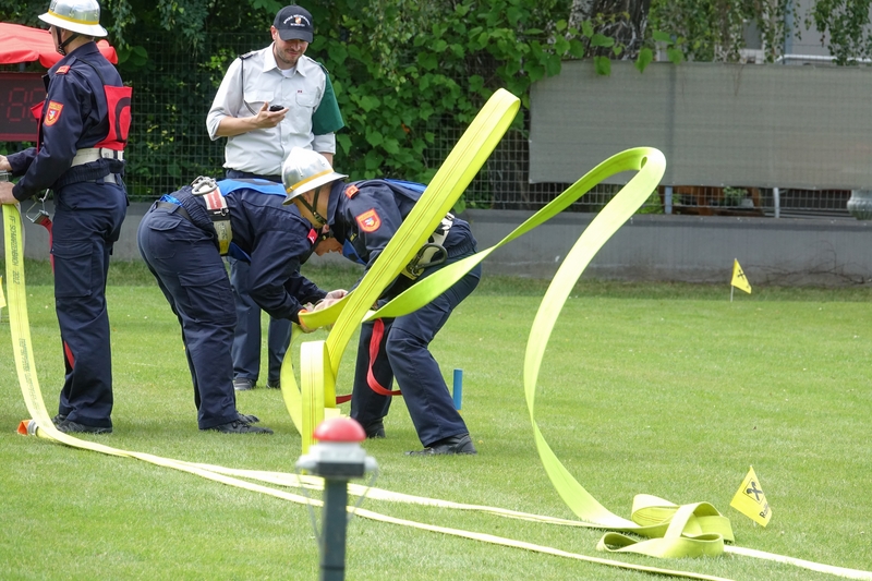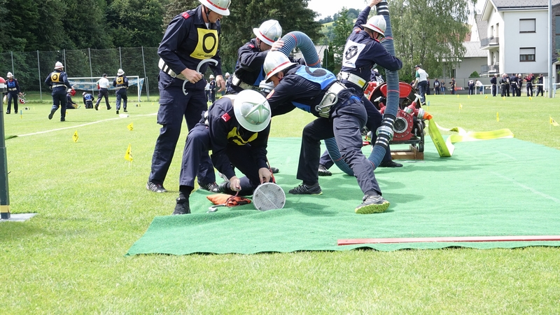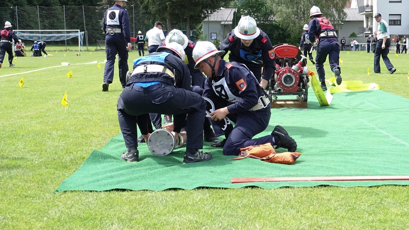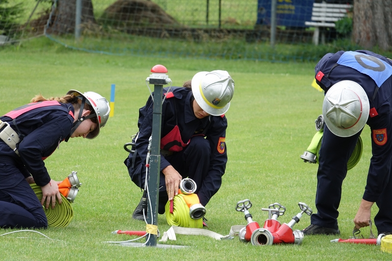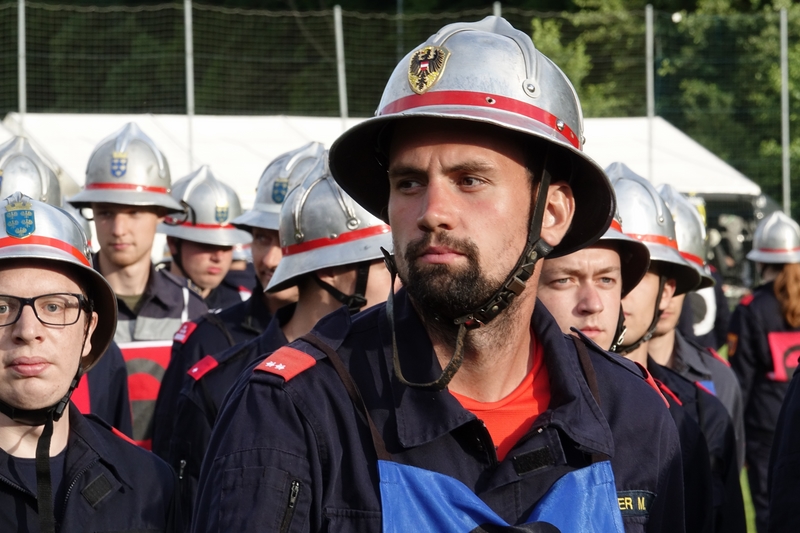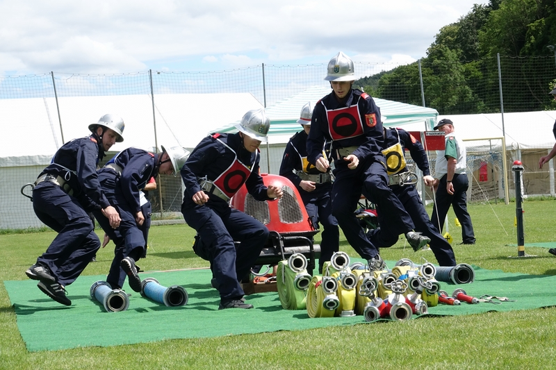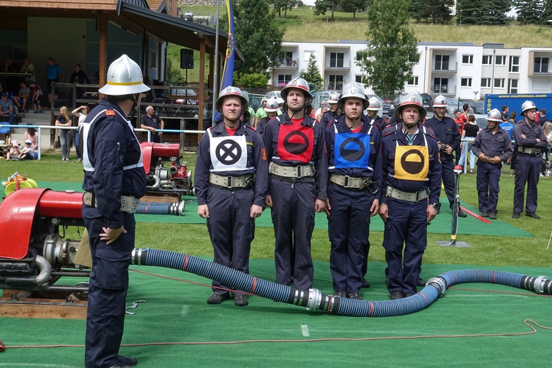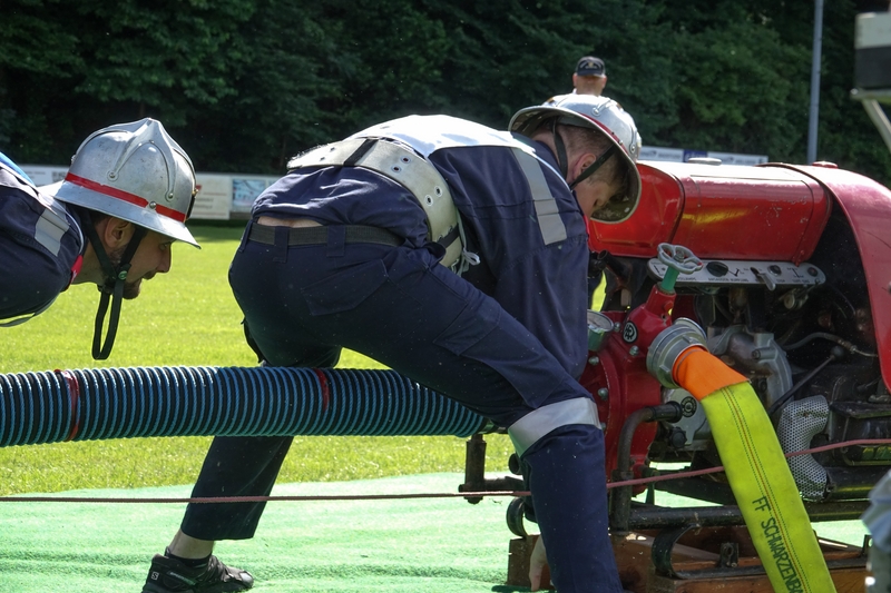 Danach wurde der Bewerb unter Bewerbsleiter und Hauptbewerter EHBI Rupert Ungersbäck und Hauptbewerter OBM Karl Zangl und ihren Teams auf dem Sportplatz des SC Schwarzenbach bei idealen Bedingungen vorbildlich durchgeführt.