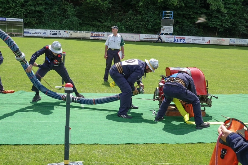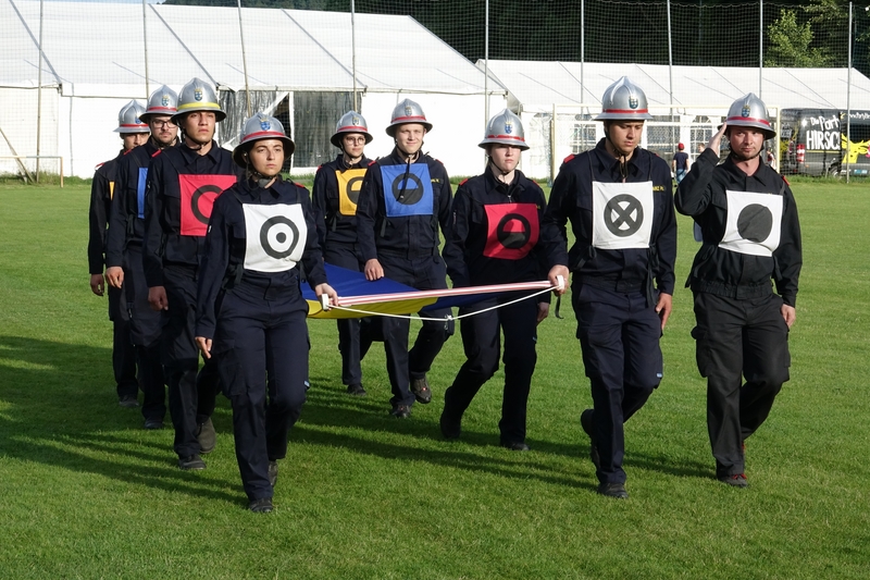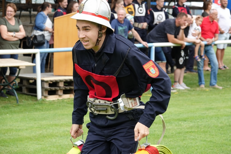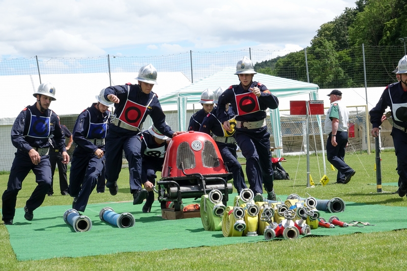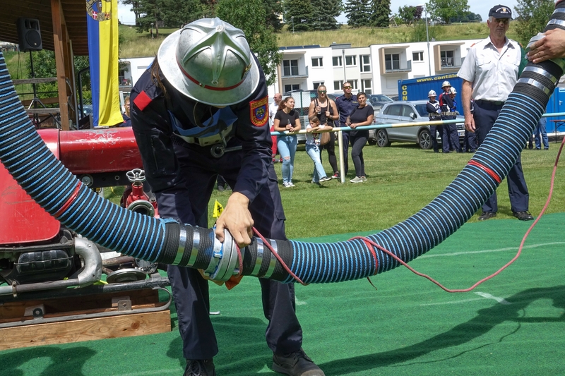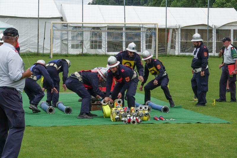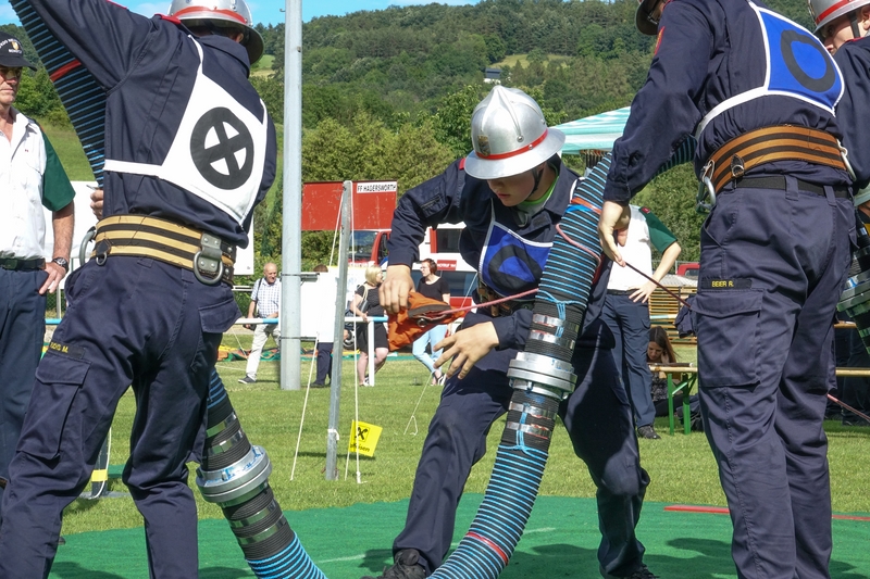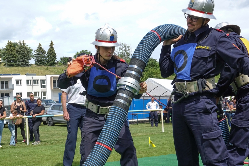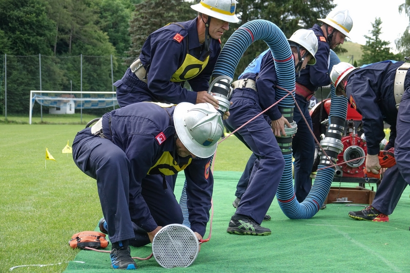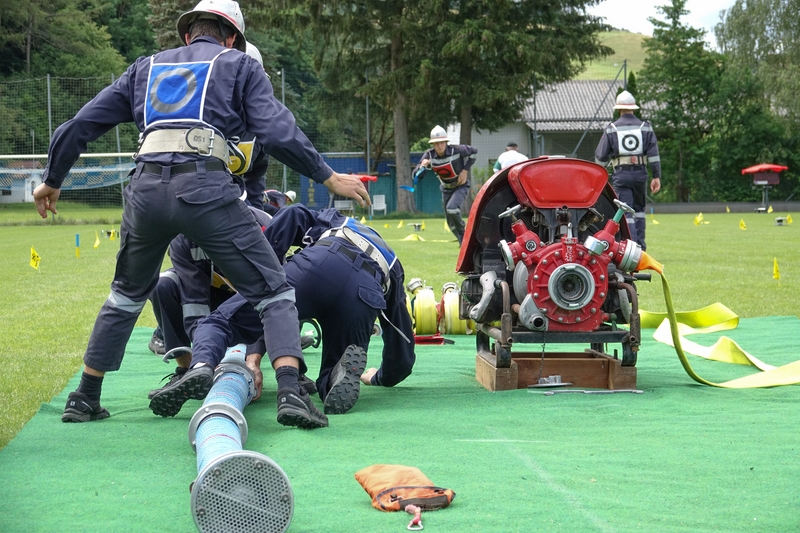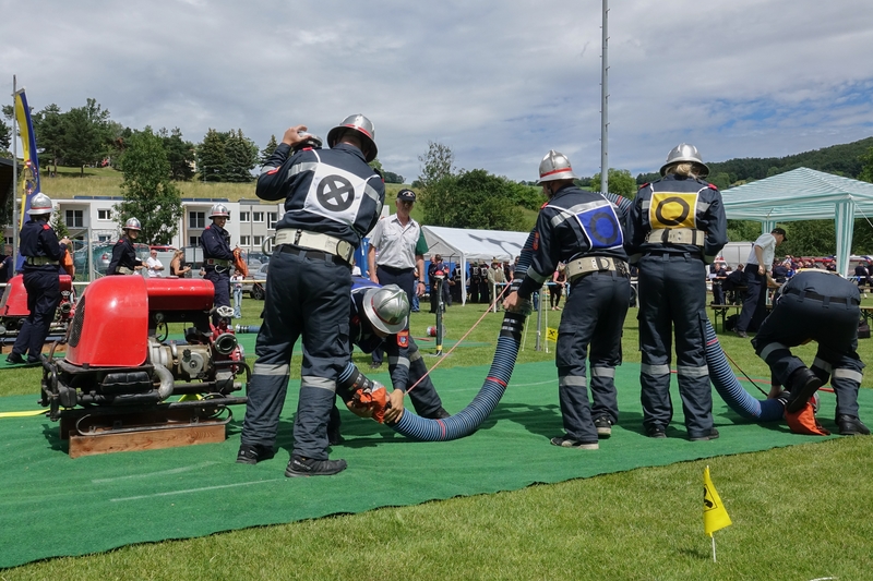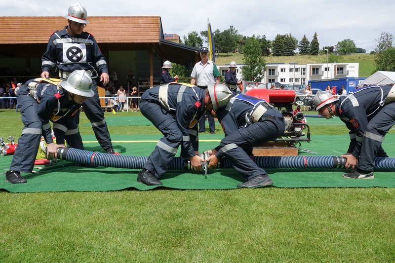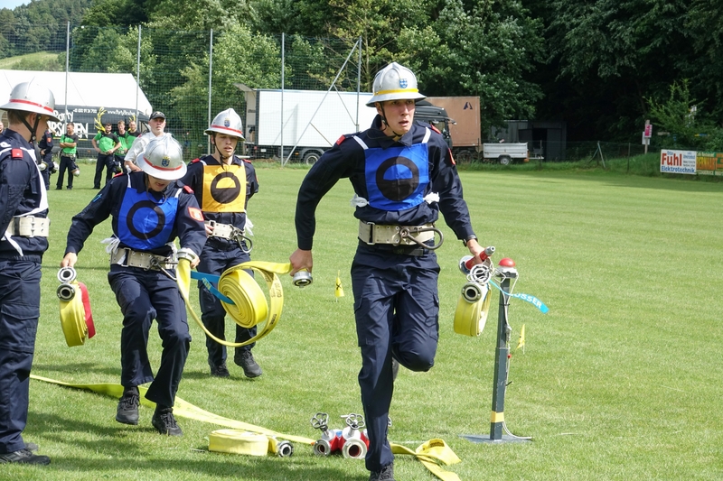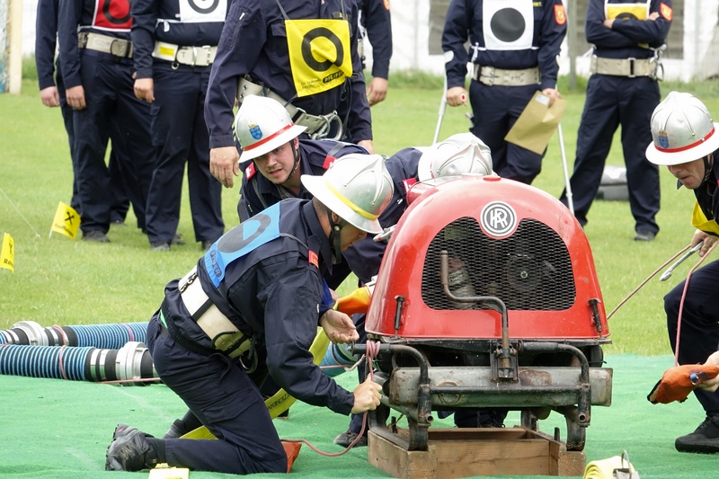 Danach wurde der Bewerb unter Bewerbsleiter und Hauptbewerter EHBI Rupert Ungersbäck und Hauptbewerter OBM Karl Zangl und ihren Teams auf dem Sportplatz des SC Schwarzenbach bei idealen Bedingungen vorbildlich durchgeführt.