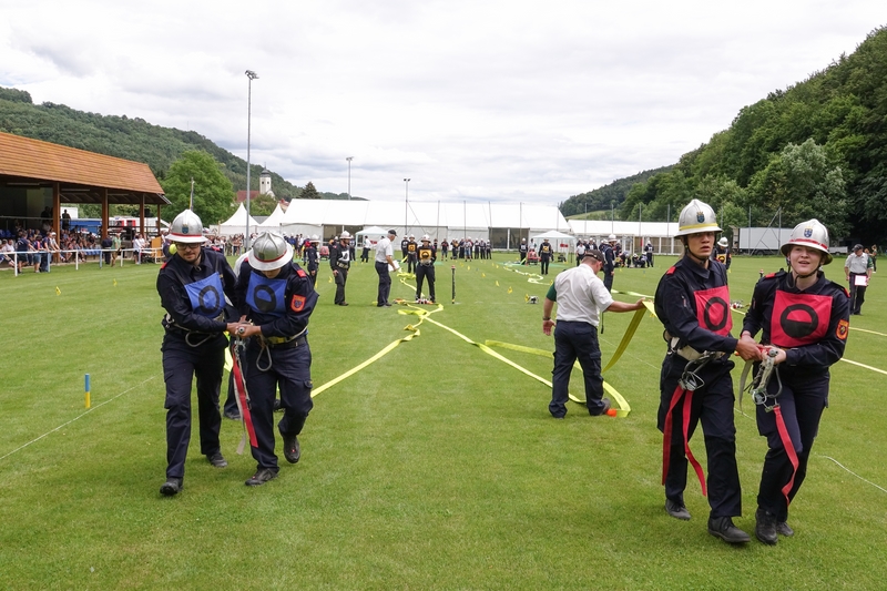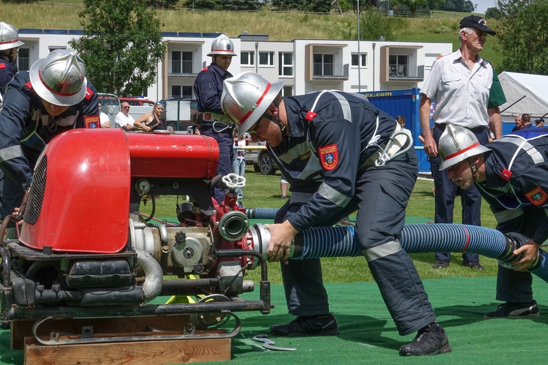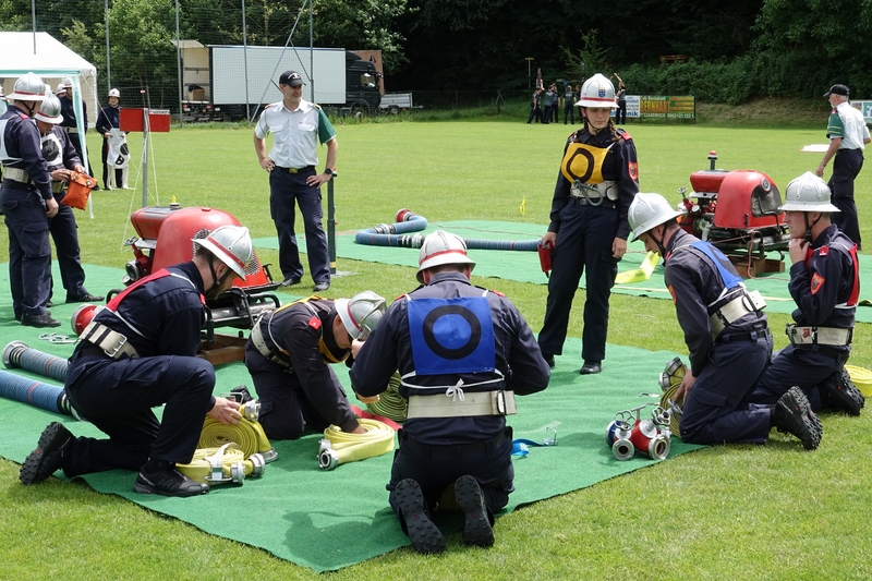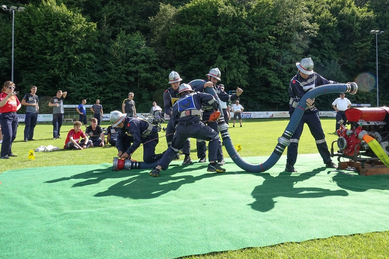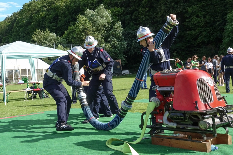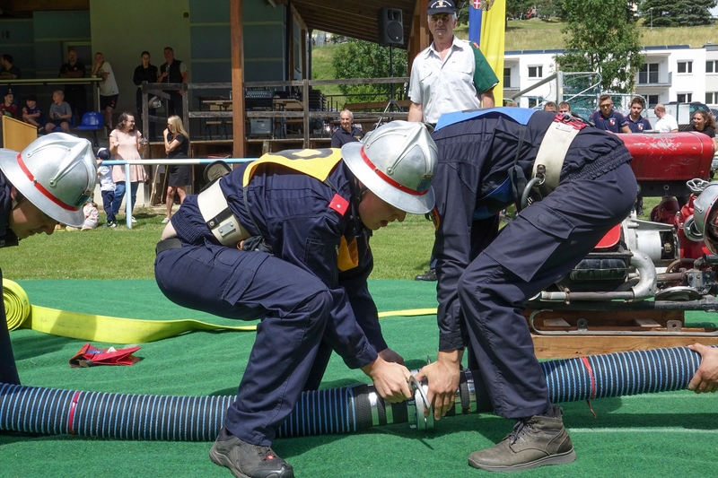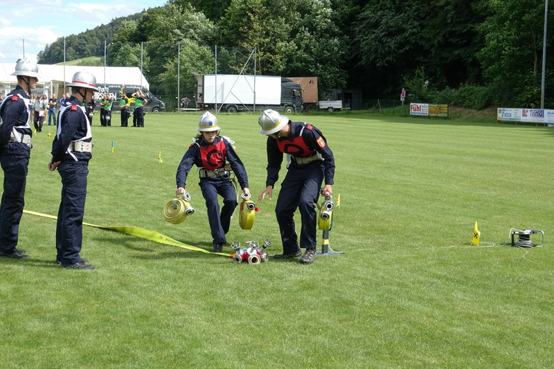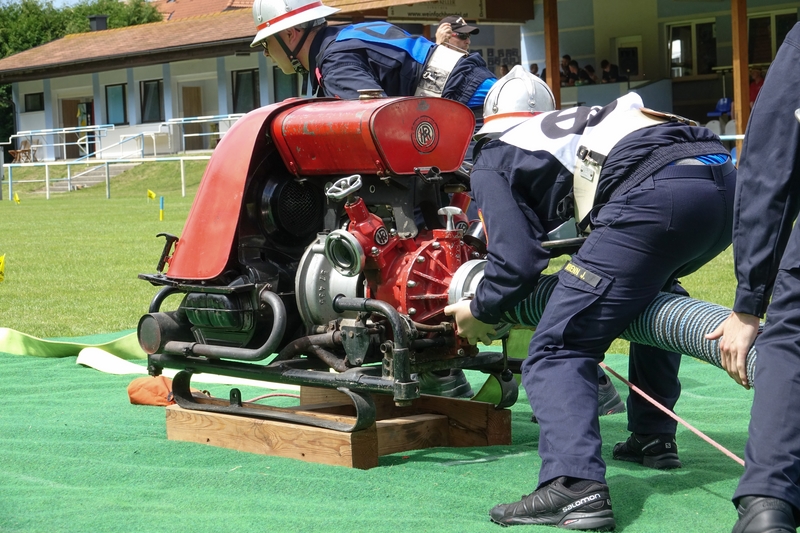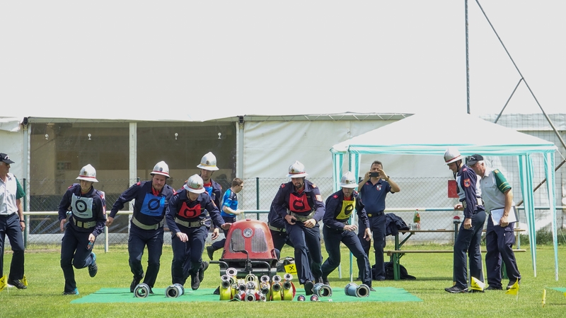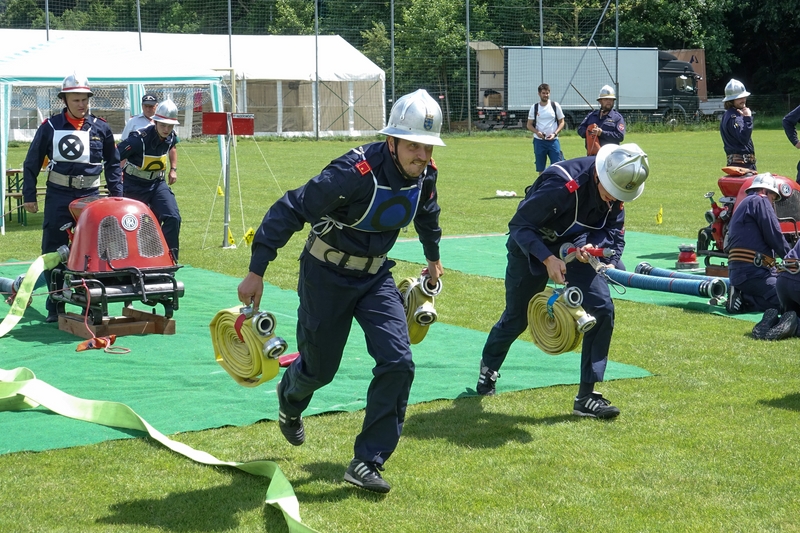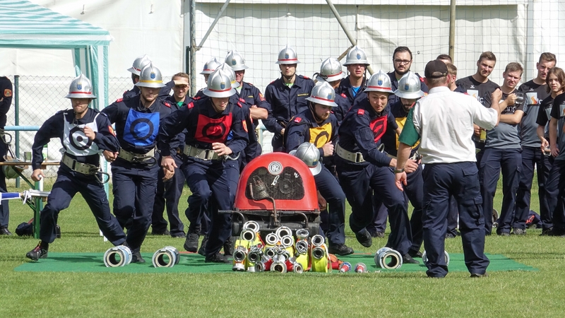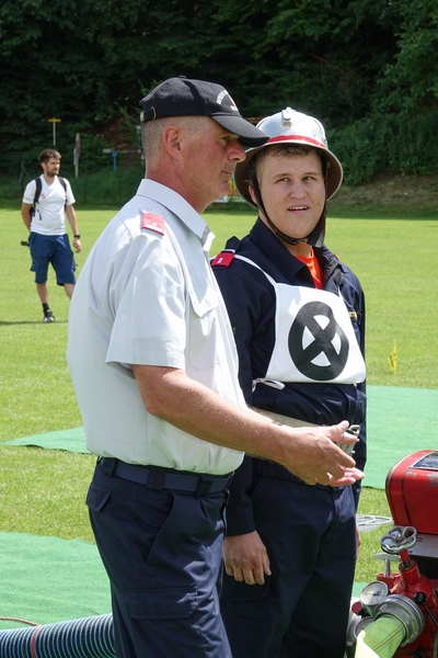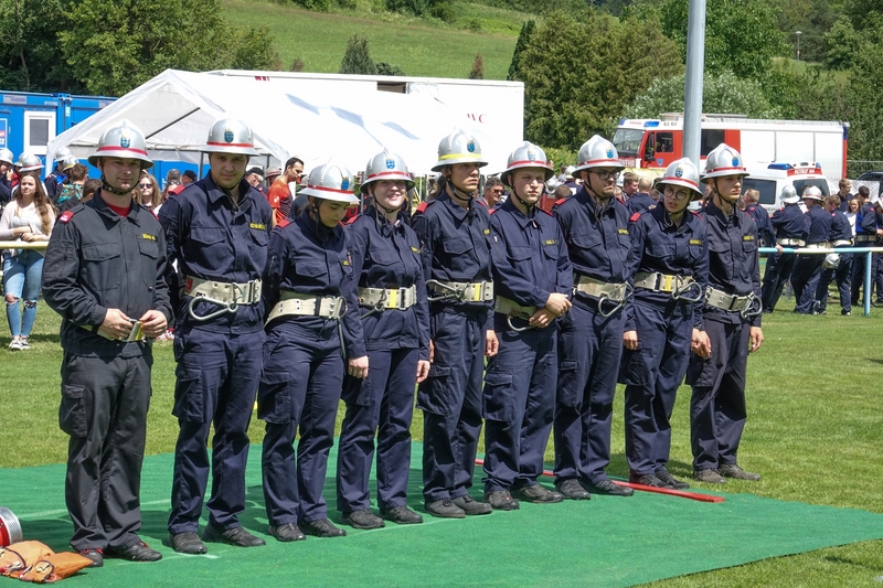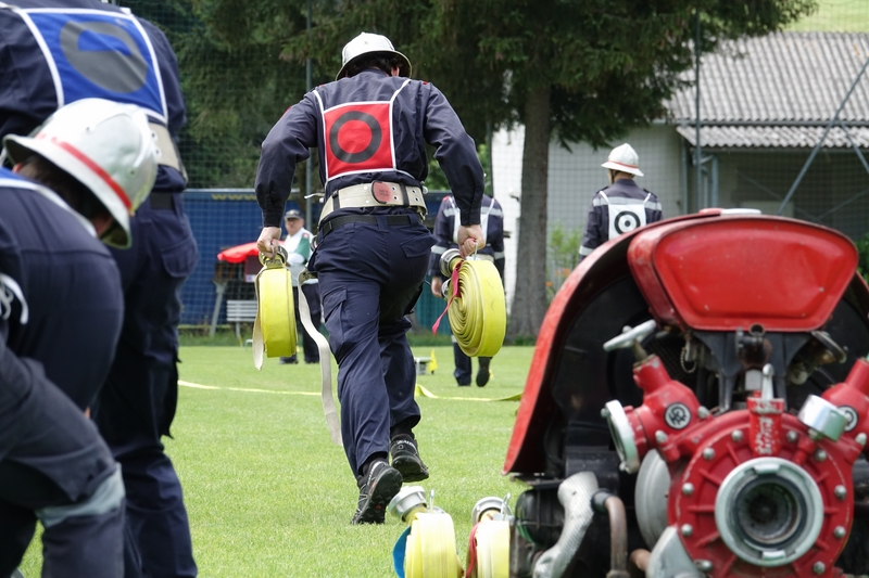 Danach wurde der Bewerb unter Bewerbsleiter und Hauptbewerter EHBI Rupert Ungersbäck und Hauptbewerter OBM Karl Zangl und ihren Teams auf dem Sportplatz des SC Schwarzenbach bei idealen Bedingungen vorbildlich durchgeführt.