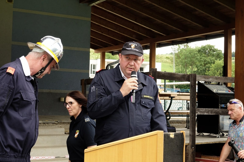 Einen besonderen Dank gab es für die ausführende Feuerwehr FF Schwarzenbach mit Kommandant HBI Thomas Weidinger und seinen Feuerwehrmitgliedern für die vorbildliche Vorbereitung des Bezirksbewerbes und dem Bewerterteam um den Bewerbsleiter EHBI Rupert Ungersbäck.