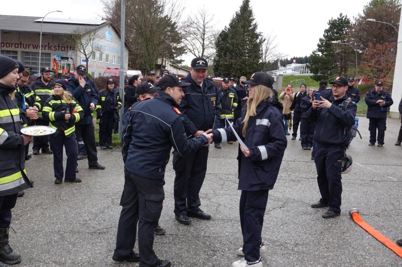 Einen besonderen Dank gab es and die Mitglieder der FF Krumbach mit Kommandant Jürgen Simon und Kommandant Stellvertreter Barbara Freiler die diese Abnahme organisierte,