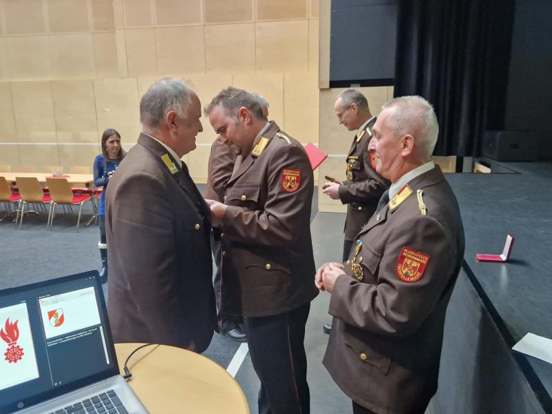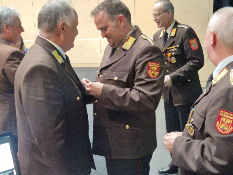 Im Rahmen des Bezirksfeuerwehrtages wurden an den Abschnittkommandant BR Michael Lechner und dem Leiter des Verwaltungsdienstes des BFKDO Wr. Neustadt VR Johann Baumgartner jeweils das Verdienstzeichen in Bronze des Burgenländischen Landesfeuerwehrverbandes verliehen.