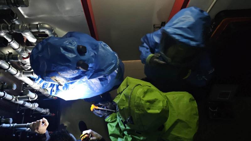 Der Tag begann mit einer theoretischen Schulung am Vormittag, welche nahtlos in den praktischen Teil überging. Das Gelernte wurde direkt angewendet: Zunächst überprüften die Teilnehmenden die Schutzanzüge und die Ausrüstung, um anschließend gemäß den Herstellerangaben die Scheiben und Reißverschlüsse für den Einsatz vorzubereiten.