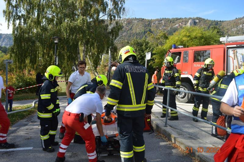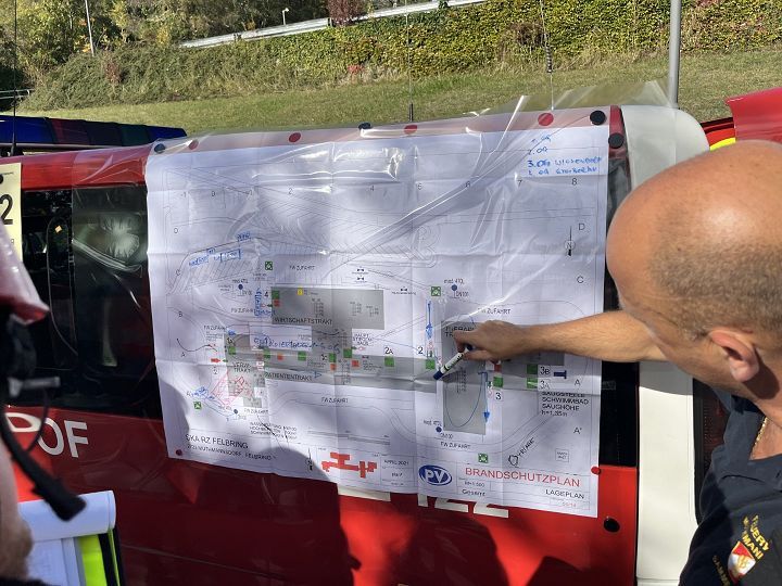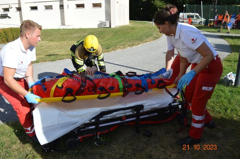 Ziel war die Zusammenarbeit zwischen den Feuerwehren, dem Roten Kreuz und dem Personal der SKA-Felbring bei folgenden 4 Szenarien zu beüben: