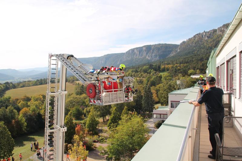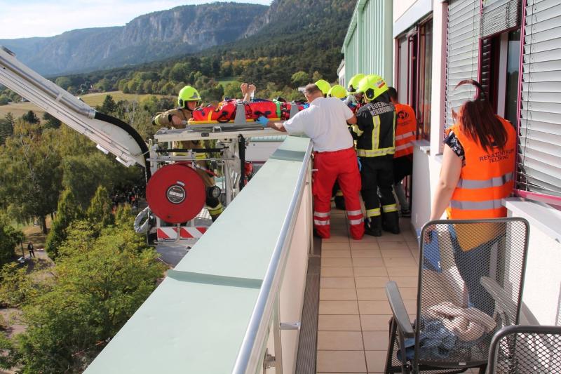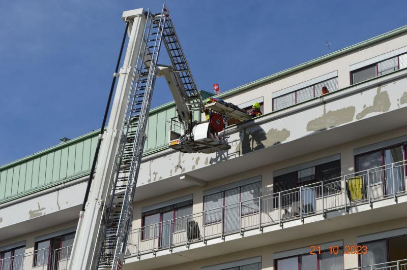 - Personenrettung aus dem 4. Stock mittels Hubsteiger