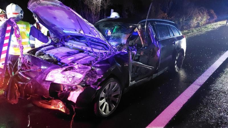 Ein schwerer Unfall forderte in der Nacht auf Donnerstag (15. Nov. 2023) zwei Verletzte. Auf der A2 kollidierte eine 23-jährige Autolenkerin aus unbekannter Ursache mit einem Lkw. Durch die Wucht des Aufpralls wurde die Fahrertüre aus der Karosserie gerissen. Die Lenkerin wurde schwer, die Beifahrerin unbestimmten Grades verletzt.