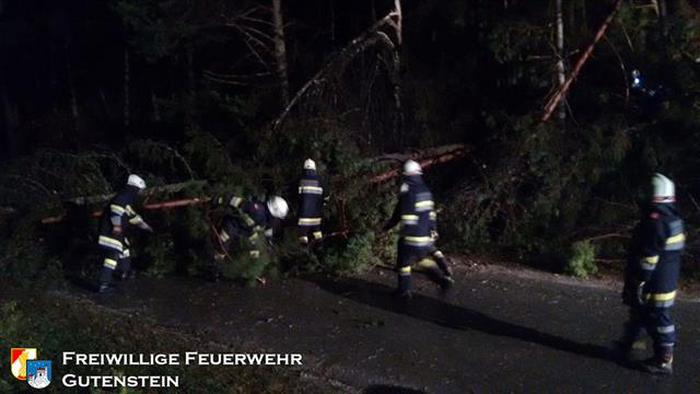 Nach einer kurzen Nacht heulten um 04.39 Uhr erneut die Sirenen, in der Steinapiesting blockierten zahlreiche Bäume die Fahrbahn.