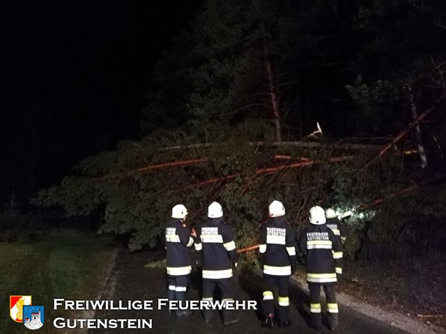 Nachdem diese Einsatzstelle abgearbeitet war, wurden wir darüber informiert, dass auch im Urgersbach zahlreiche Bäume die Straße blockieren. Um 07.30 Uhr war auch die Straße in den Urgersbach wieder befahrbar und die FF Gutenstein konnte mit allen Fahrzeugen ins Feuerwehrhaus einrücken.