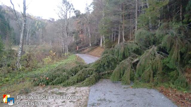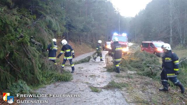 Auf der B21 waren aufgrund des Sturmes mehrere Bäume auf die Fahrbahn gestürzt. Da ein gefahrloses Entfernen der Bäume aufgrund des anhaltenden Sturmes für die Einsatzkräfte nicht möglich war, wurde durch die Straßenmeisterei Gutenstein die B21 am Rohrer Berg für den Verkehr gesperrt.