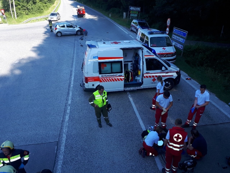 Während des Einsatzes um ca. 17h wurde die Feuerwehren zu einem weiteren schweren Verkehrsunfall auf die Kreuzung Wopfing LB21 gerufen. Hier kollidierte ein Motorradfahrer mit einem PKW. Der Motorradfahrer wurde unbestimmten Grades verletzt und nach der Versorgung durch den Notarzt in das Unfallkrankenhaus eingeliefert. Nach dem freimachen der Fahrbahn konnte diese wieder von der Polizei freigegeben werden. Aufgrund der beiden Unfälle kam es zu einem großräumigen Verkehrsstau.