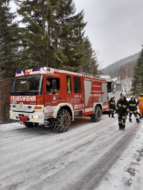 KRFA-B Gutenstein rückte mit sieben Mann aus um den Lkw wieder von der Straße zu bekommen, an der Einsatzstelle angekommen wurde der Lkw auf das Firmengelände abgeschleppt und gesichert abgestellt. Im Feuerwehrhaus waren drei Mann in Bereitschaft. Nach ca. 1 Stunde konnten die Feuerwehrmitglieder wieder einrücken.
