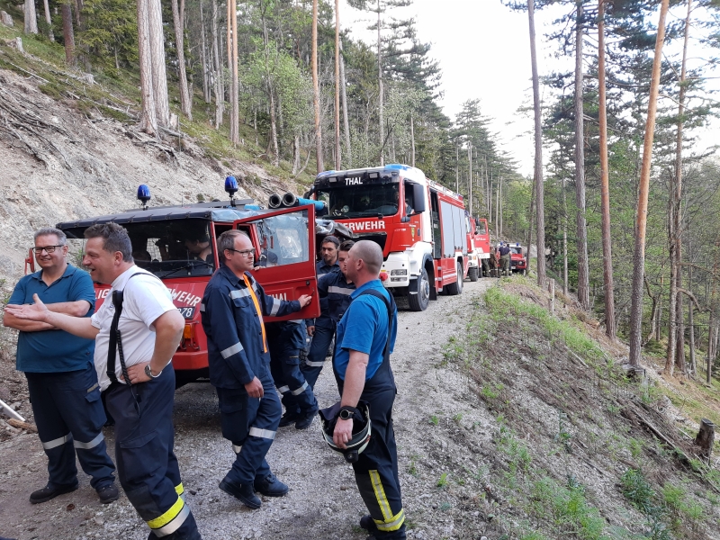 Da die Wasserversorgung sehr schwierig war wurden die Feuerwehren: FF Muggendorf, FF Thal, FF Waidmannsfeld, FF Neusiedl und FF Rohr im Gebirge nach alarmiert um einen Pendelverkehr mit Tankfahrzeugen sicher zu stellen.