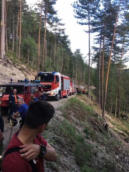 Kommandofahrzeug, Tanklöschfahrzeug und Löschfahrzeug Gutenstein rückten aus um den Brand zu suchen. Nach kurzer Zeit wurde der Brandherd auch gefunden der durch einen Blitzschlag hervorgerufen wurde und eine Fläche von ca. 200 m2 brannte. Von der Straße aus mussten noch ca. 200 Meter B - Schlauch in sehr steiles Gelände zum Brandherd nach oben verlegt werden.