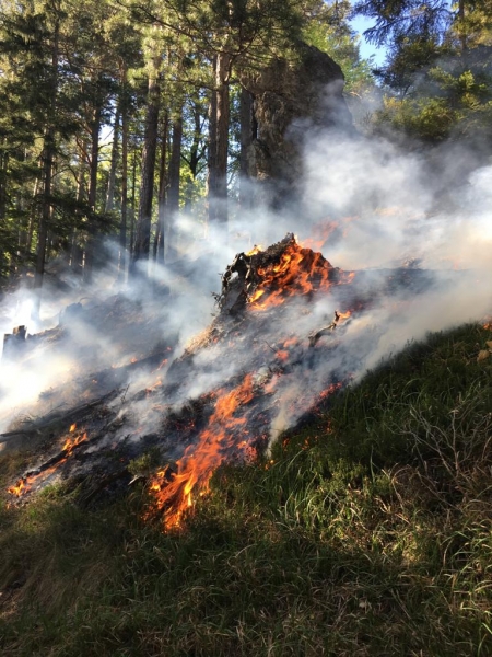 Starker Wind erschwerte zusätzlich die Löscharbeiten. Mit der Wärmebildkamera wurde der Boden nach Glutnester abgesucht und gelöscht.