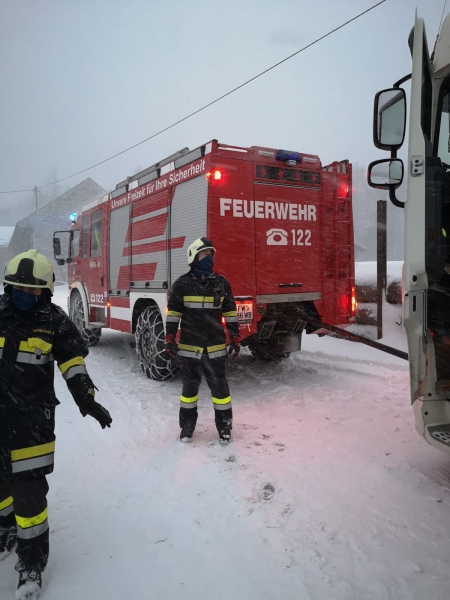 Am 14.01.2021 um ca.15 Uhr 53 wurde die FF Gutenstein mittels Pager und Sirene zu einer Lkw Bergung ins Klostertal, höhe Jansch " ehemaliges Sägewerk " alarmiert. Aufgrund der Winterlichen verhältnisse blieb ein Sattelschlepper auf der ansteigenden Fahrbahn hängen.
