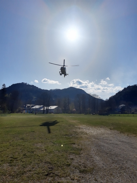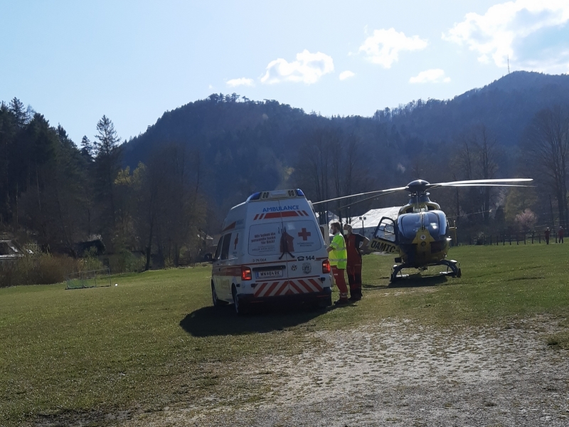 Glück im Unglück war das der Unfall auf höhe des Gemeindearztes passierte, somit konnte der Radfahrer sofort Fachärztlich versorgt werden, bis der Notarzt Hubschrauber eintraf.