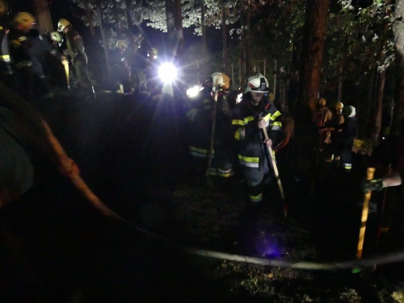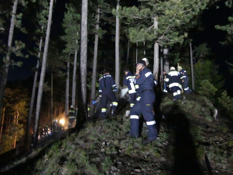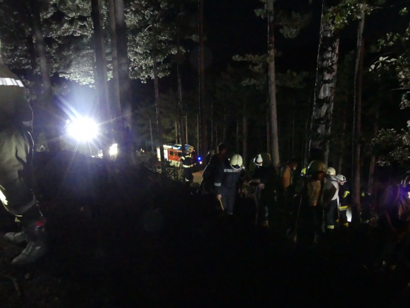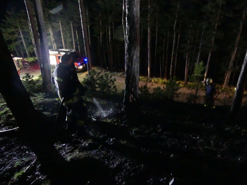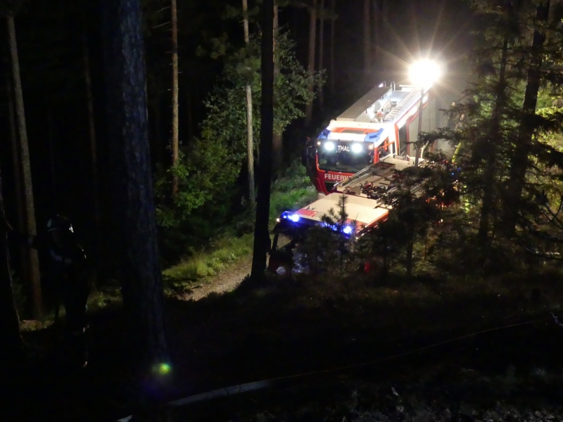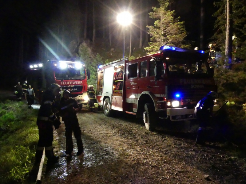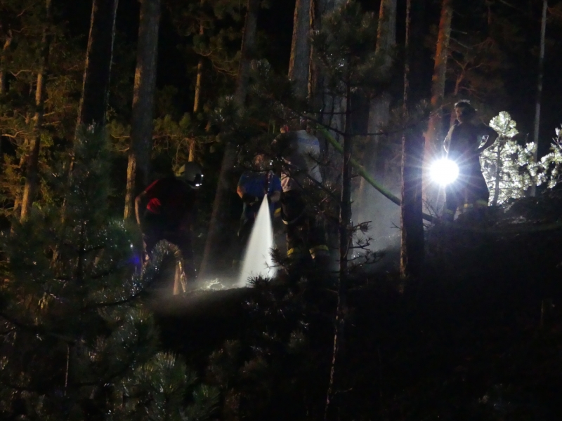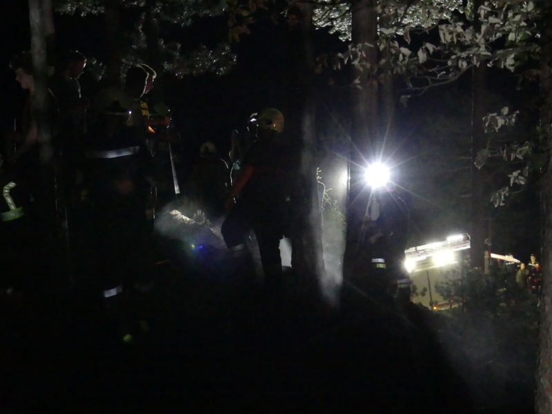 Die Nachlöscharbeiten gestalteten sich allerdings schwierig, da mittels Schanzwerkzeug die Glutnester bekämpft werden mussten. Zudem kam das unwegsame Gelände, sowie die bereits eingesetzte Dunkelheit hinzu, welche eine zusätzliche Gefahr für die Einsatzkräfte darstellte. Das Löschwasser wurde mit Tanklöschfahrzeugen, zugeführt.