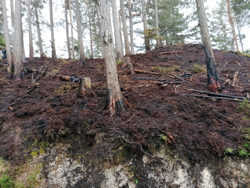 Der Waldbrand wurde durch einen oder mehrere Blitzeinschläge ausgelöst, es wurden insgesamt drei (sogenannte) Blitz Bäume gefunden. Moosingthal höhe Weissenbach Grenze.