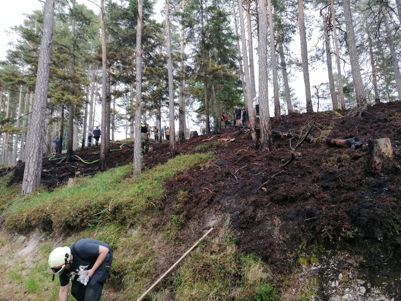 Es war eine Fläche von rund einem Hektar, wieder im steilen Gelände, betroffen. Ca. 34 000 Liter Wasser wurden zum Brandherd befördert.