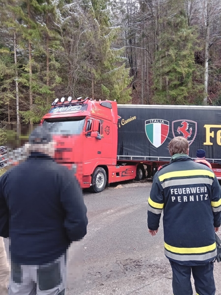 Um 06:32 Uhr des 06. Dezember wurde die FF Pernitz mit dem Wortlaut „LKW-Bergung für Pernitz, Kreuth/Schärfthal 16, LKW im Graben“ mittels Pager und Blaulicht-SMS von der BAZ Wiener Neustadt alarmiert.