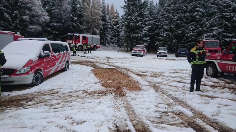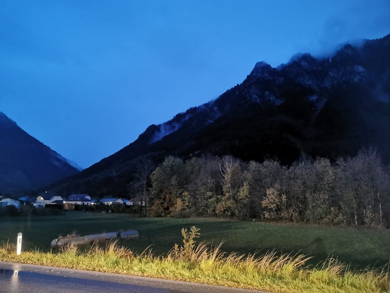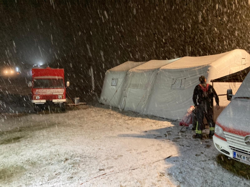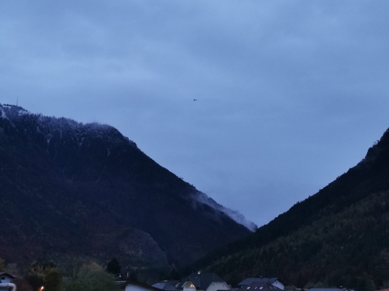 Nach den massiven Löscheinsatz durch die bis zu 16 Luftfahrzeuge am Feiertag kam am Abend der gewünschte Niederschlag. In der Bereichseinsatzleitung Feichtaberg "BERG" auf rund 1370m wurde dieser zu Schnee - mit allen Vor - und Nachteilen.