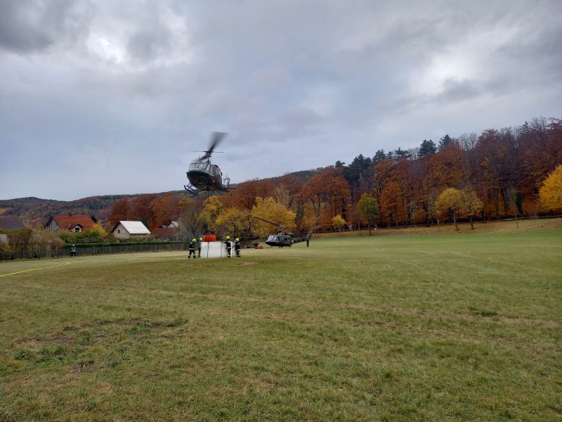Bereits den 9. Tag durchgehend sind Einsatzkräfte aus dem Feuerwehrbezirk Wr. Neustadt im Einsatz beim Waldbrand in Reichenau. Besonders die Mitglieder der Flugdienstbasisgruppe Süd aus Wiener Neustadt waren bis jetzt mit Mitgliedern der FF Wr. Neustadt durchgehend Einsatz. Die Mitgliedern des BFÜST sind in der Bereichseinsatzleitung "BERG" seit 29. Oktober durchgehend in einer 24h-Schicht im Einsatz. Heute am 2. November unterstützt der Katastrophenhilfszug (KHD-Zug) 2/21 aus Kirchschlag die Einsatzkräfte in Reichenau. Der KHD-Zug ist für die Betankung der Hubschrauber mit Wasser zuständig.
