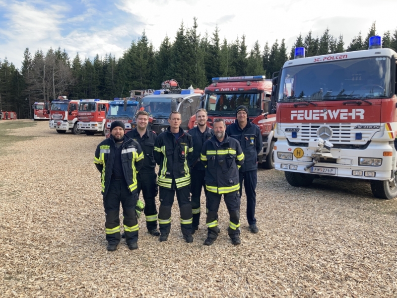 Zwei Katastrophendienst (KHD) - Züge mit Einsatzkräften aus dem Abschnitten Wr. Neustadt Nord, Gutenstein und Kirchschlag kamen an zwei Tagen mit 109 Feuerwehrmitgliedern und 1.423 Stunden zum Einsatz. Diese sorgten am Absprungplatz (Landeplatz der Hubschrauber) für die rasche Betankung der Hubschrauber mit Löschwasser.