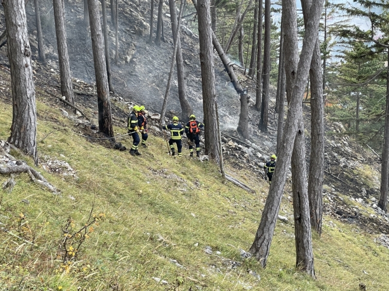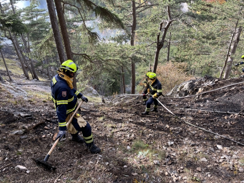 Diese hatten die anstrengendste Aufgabe – die Glutnester direkt im steilen und unwegsamen Einsatzgebiet zu löschen. Die Einsatzkräfte der Feuerwehr wurden von der Bergrettung unterstützt und gesichtert.