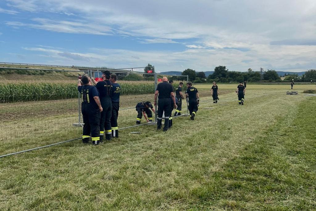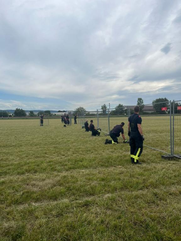 59 Feuerwehrkameraden*innen warb mit 11 Fahrzeugen im FSZ und errichteten die Umzäunung für das Gelände der Leistungsschau.