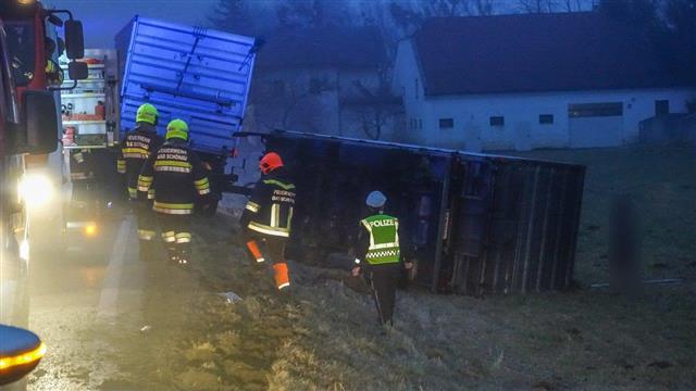 Nach der polizeilichen Freigabe wurde der schwer beschädigte Pkw mittels Rangierroller auf einen naheliegenden Parkplatz geschoben und gesichert abgestellt. Für die Bergung des Zugfahrzeugs musste der Anhänger getrennt werden. In Folge wurde mittels Seilwinde der FF Bad Schönau der Lkw unter Gegensicherung zurück auf die Fahrbahn gezogen.