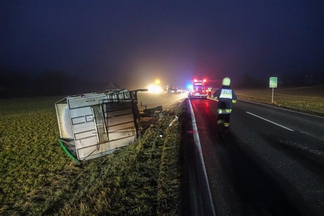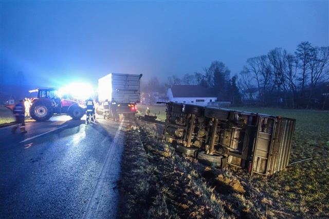 Da der unbeladene Anhänger kein Verkehrhindernis darstellt wurde in Absprache mit dem Firmenleiter eine Bergefirma für den nächsten Tag bestellt, welche die Bergung bei Tageslicht durchführt. Die B55 musste für kurze Zeit komplett gesperrt werden. Sonst konnte der Verkehr bis zum Entfernen des Zugfahrzeugs einspurig an der Unfallstelle vorbeigeleitet werden.