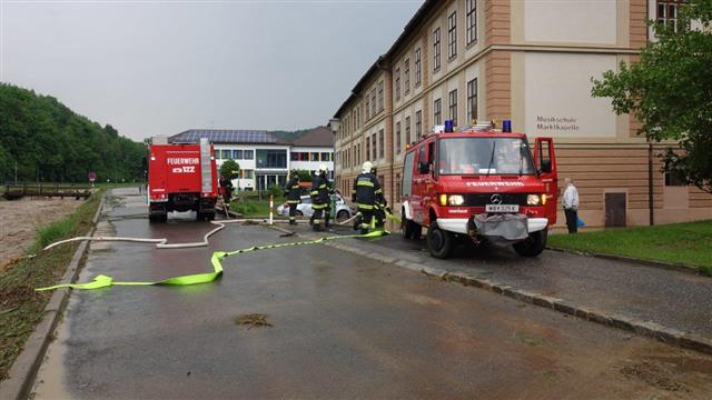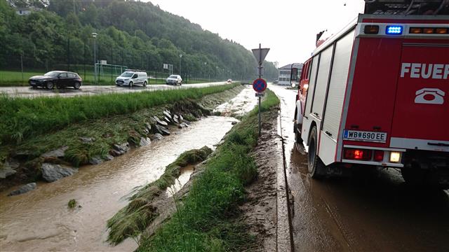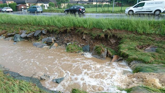 Eine stationäre Zelle, welche rund 30 Minuten mit Starkregen und kleinkörnigen Hagel über dem Raum Stang wütete, führte innerhalb kürzester Zeit zu kleinräumigen Überflutungen. Der Reißenbach, welcher von Stang nach Kirchschlag führt, konnte die enormen Wassermassen nicht mehr aufnehmen und trat an mehreren Stellen über die Ufer.