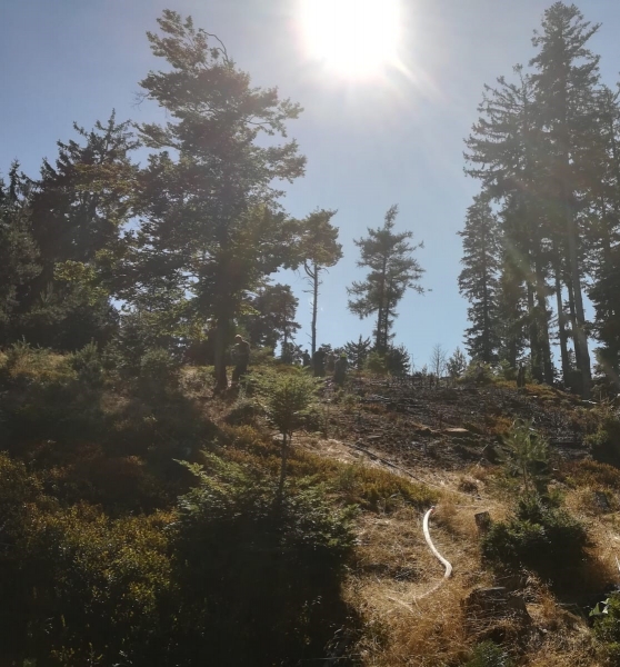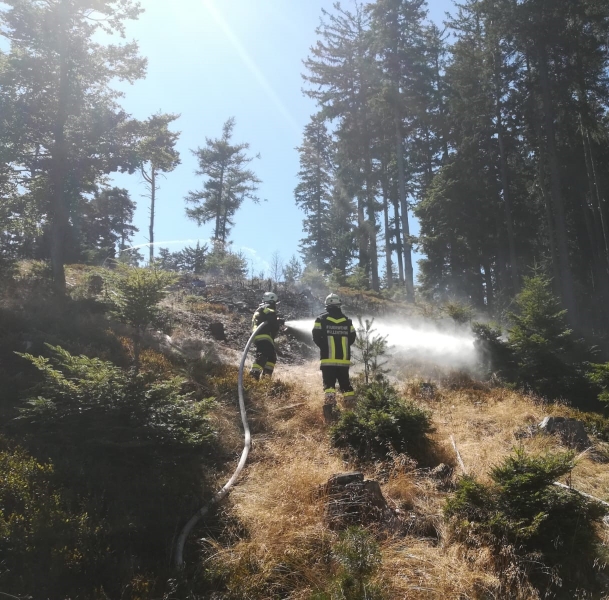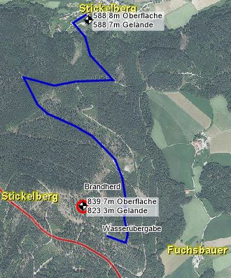 Dort angekommen stellte sich heraus, dass es sich um einen Entstehungsbrand auf einer Freifläche knapp unterhalb des Stickelberger Gipfels (881m Seehöhe) handelte. Nach der ersten Lageerkundung begann Tank Stickelberg mit der Brandbekämpfung und Eindämmung des Brandes. Es handelte sich um einen überschaubaren Brandherd, welcher jedoch nicht mit eigenen Mitteln auf Dauer bekämpfbar war. Somit wurde von der Einsatzleitung auf Alarmstufe B3 erhöht. Da es sich der Einsatzort in einem eingezäunten Wildgatter befand, wurden mittels Rüst Stickelberg Posten bzw. Lotsen am Einfahrtstor und auf der Wegstrecke bis zum Brandobjekt aufgestellt. Auf Grund der Alarmstufe B3 wurde auch die FF Kirchschlag, welche normalerweise mit Atemluftanhänger an den Einsatzort gerufen wird, alarmiert.