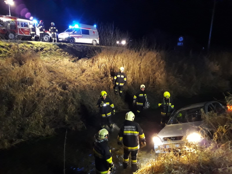 Am Sonntag den 8. Dezember 2019 um 23:36 Uhr wurde die Feuerwehr Bad Schönau von der Bezirksalarmzentrale Wiener Neustadt zu einer Fahrzeugbergung an der B55 bei km 18,6 gerufen. Aufgrund einer eisglatten Fahrbahn ist ein PKW ins Schleudern geraten und über die Böschung in den Zöberbach gestürzt und am Dach liegen geblieben.