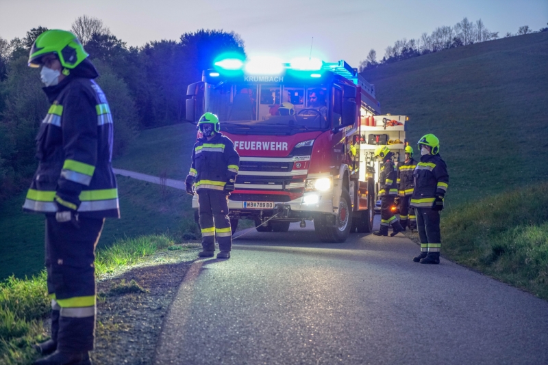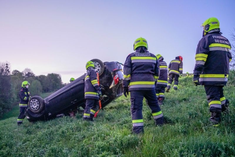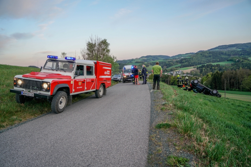 Eine Lenkerin kam am Ödhöfener Berg aus noch unbekannter Ursache mit ihrem Pkw von der Fahrbahn ab und überschlug sich in eine abfallende Wiese. Der Pkw kam in Folge auf dem Dach liegen. Beim Eintreffen der ersten Feuerwehreinsatzkräfte war die Frau bereits von einem Ersthelfer aus dem Fahrzeug befreit worden. Sie wurde nach medizinischer Erstversorgung durch das Rote Kreuz mit Verletzungen unbestimmten Grades ins Landesklinikum Wiener Neustadt gebracht. Nach der polizeilichen Freigabe wurde der Unfallwagen von den beiden alarmierten Feuerwehren auf die Räder gestellt, aus der Wiese geborgen und gesichert abgestellt. Nach rund 1,5 Stunden konnte der Einsatz beendet werden.