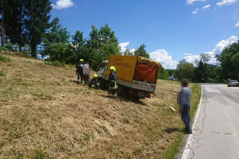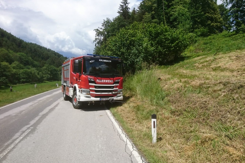 Am 3. Juni 2020 um 12:15 Uhr wurde die FF Krumbach zu einer Fahrzeugbergung in den Krumbacher Ortsteil Unterhaus gerufen. Ein Lenker war mit seinem Klein-LKW aus unbekannter Ursache von der Straße abgekommen, die Straßenböschung hinaufgefahren und in weiterer Folge seitlich zu liegen gekommen.