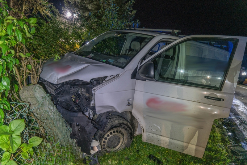 Der Kleintransporter wurde durch den Zusammenstoß in einen angrenzenden Gartenzaun geschleudert.