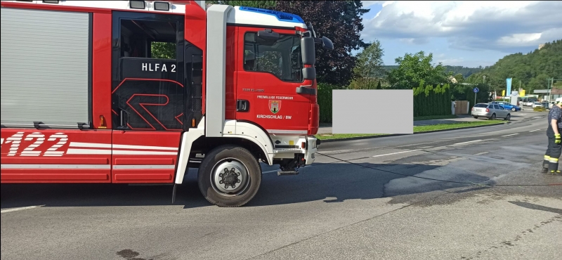 Am Nachmittag des 11. August wurde die FF Kirchschlag mittels stillen Alarm zu einer Fahrzeugbergung an der B55 gerufen. Am Einsatzort eingetroffen wurde durch den Fahrzeugkommandanten die Lager erkundet. Die Polizei vor Ort hatte schon den Einsatzbereich abgesichert.