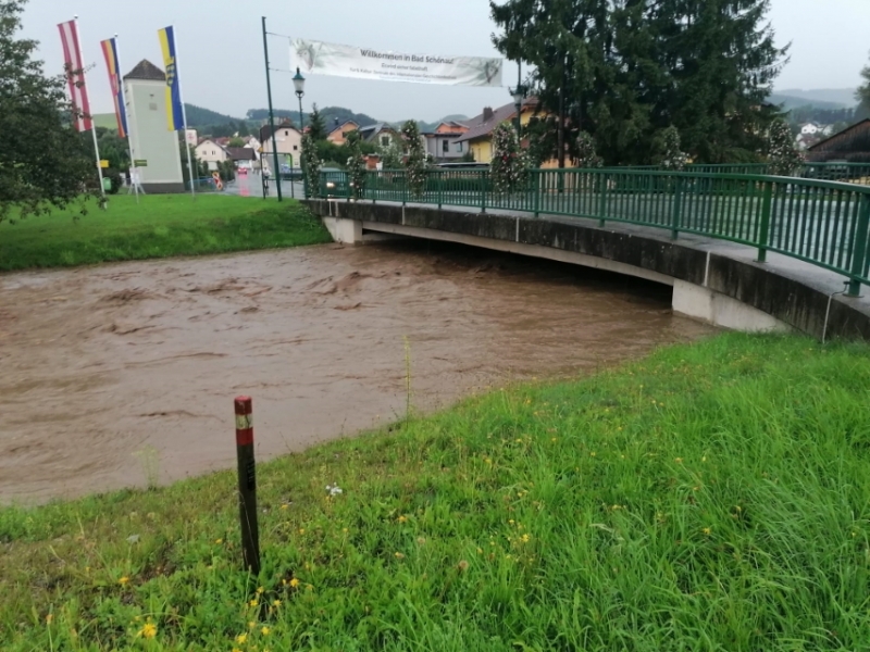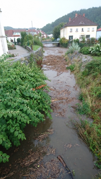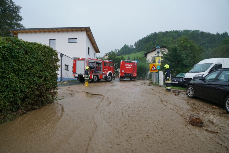Daraufhin wurden die Freiwilligen Feuerwehren Weißes Kreuz, Bad Schönau und Kichschlag nachalarmiert. Mehrere Keller waren in Unterhaus auszupumpen.