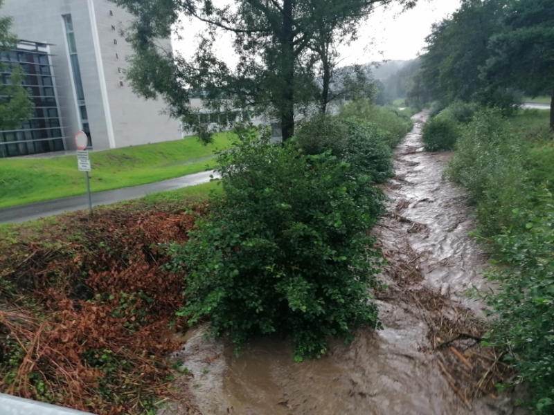 Nachdem der Starkregen nach einer Stunde wieder nachgelassen hatte, gingen auch die Pegel der Bäche wieder rasch zurück. Sofort wurde mit der Reinigung der Straßen und betroffenen Bereiche durch die Feuerwehren begonnen.
