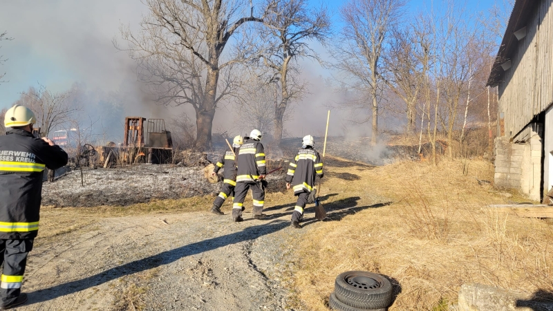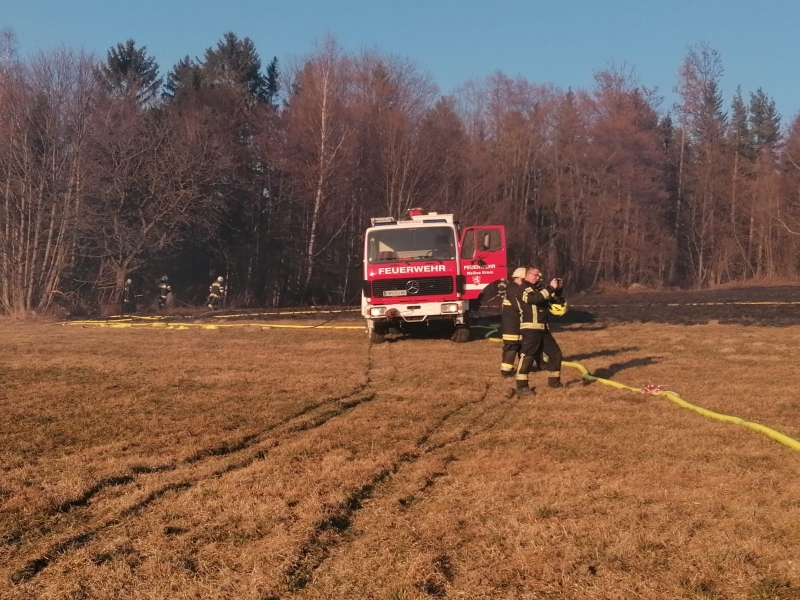 Durch den böigen Wind breitete sich das Feuer zu Beginn rasant aus. Mittels Löschwasser und durch die Bearbeitung des Brandes mittels Feuerpatschen konnte der Brand rasch unter Kontrolle gebracht werden. Insgesamt war eine Fläche von rund einem halben Hektar betroffen. Eine weitere Ausbreitung in den angrenzenden Wald konnte verhindert werden.