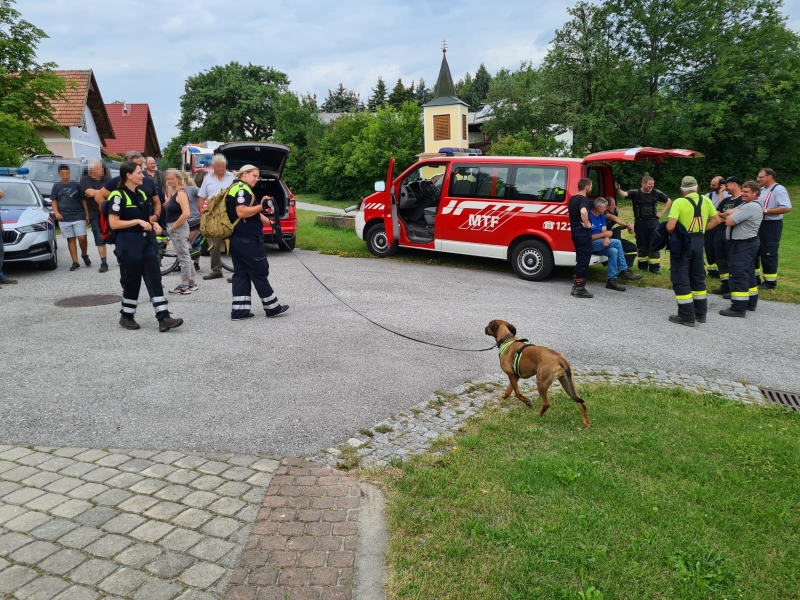 Polizei mit Hund, Österreichische Rettungshundebrigarde, Rettungshundestaffel des Samariterbund, Hundestaffel des Rotes Kreuz, Polizeihubschrauber FLIR, Drohne FF Edlitz, Drohne Rotes Kreuz, FF Krumbach, FF Bad Schönau, FF Weißes Kreuz