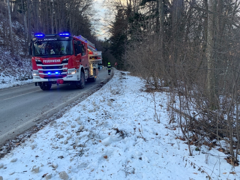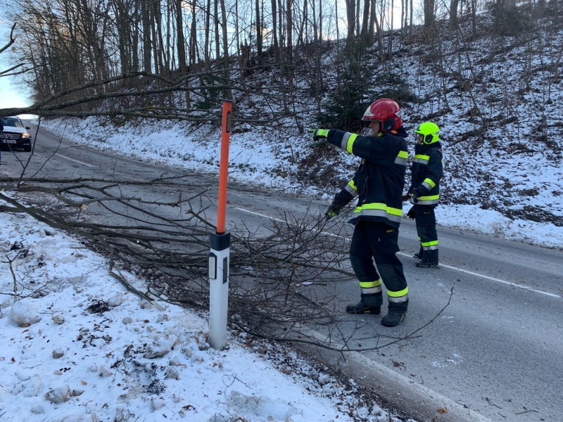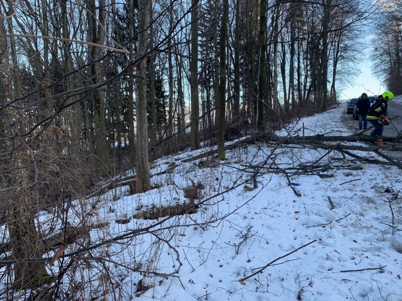 Zu einem Sturmschaden wurden die Mitglieder der FF Krumbach am Nachmittag des 4. Februar auf die Hochneukirchenstraße gerufen. Ein Baum war auf Grund des Sturmes umgeknickt und blockierte die Hochneukirchenstraße (L146).