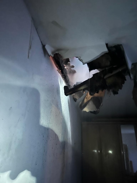 Für die Löscharbeiten wurde die Decke geöffnet und der Brand bekämpft. Durch die Löscharbeiten wurden auch die darunter liegenden Wohnungen beschädigt.