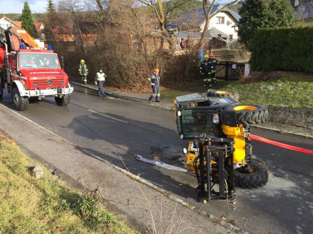 Am Dienstag, dem 11. Dezember 2018 kam es auf der L87 im Gemeindegebiet von Muthmannsdorf in der Rechtskurve vor der Ortsausfahrt, Fahrtrichtung Dreistetten, zu einem Verkehrsunfall. Ein mit einem Telelader beladener Traktoranhänger kippte in der Kurve um. Beide Fahrzeuge kamen seitlich auf der Fahrbahn zu liegen.